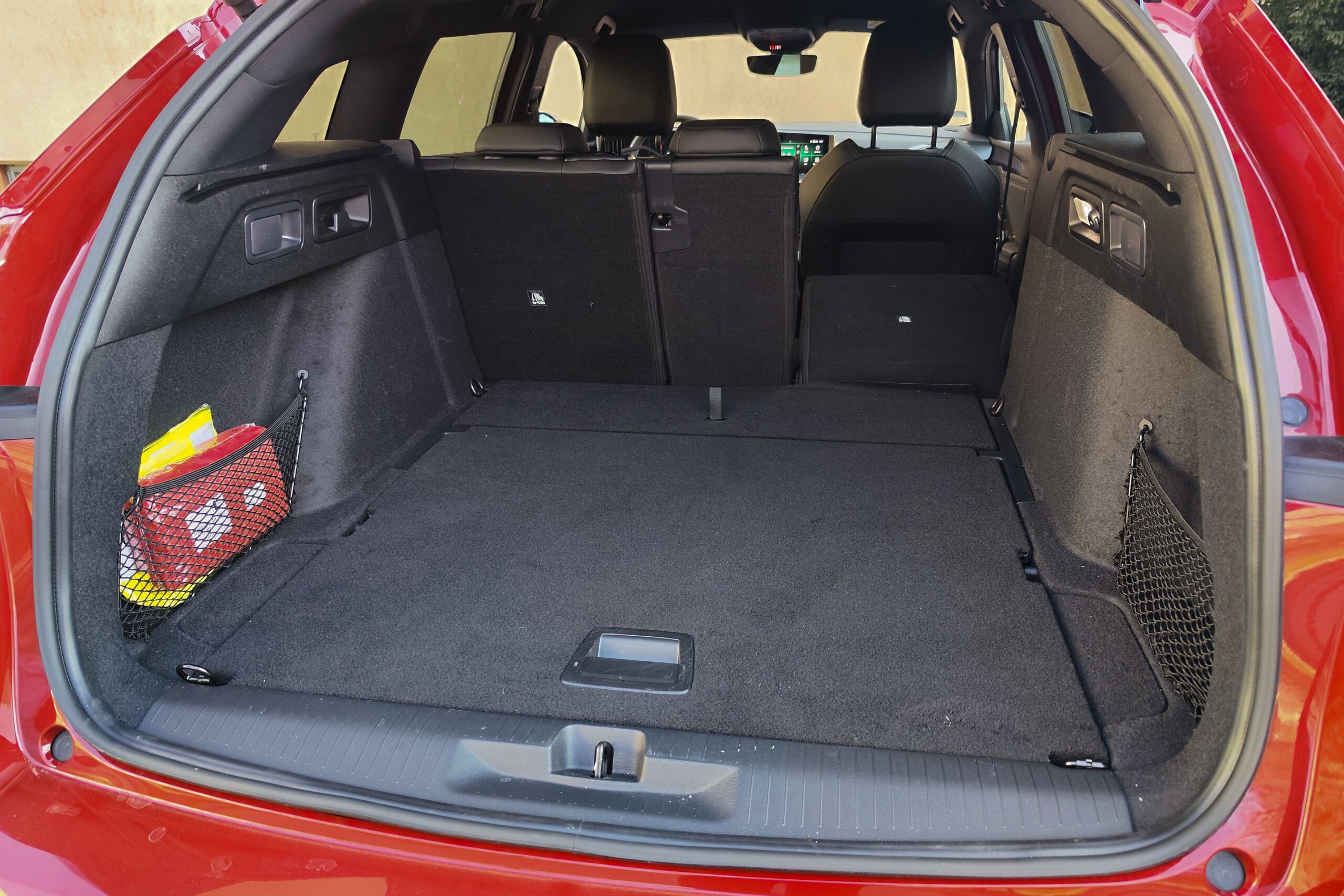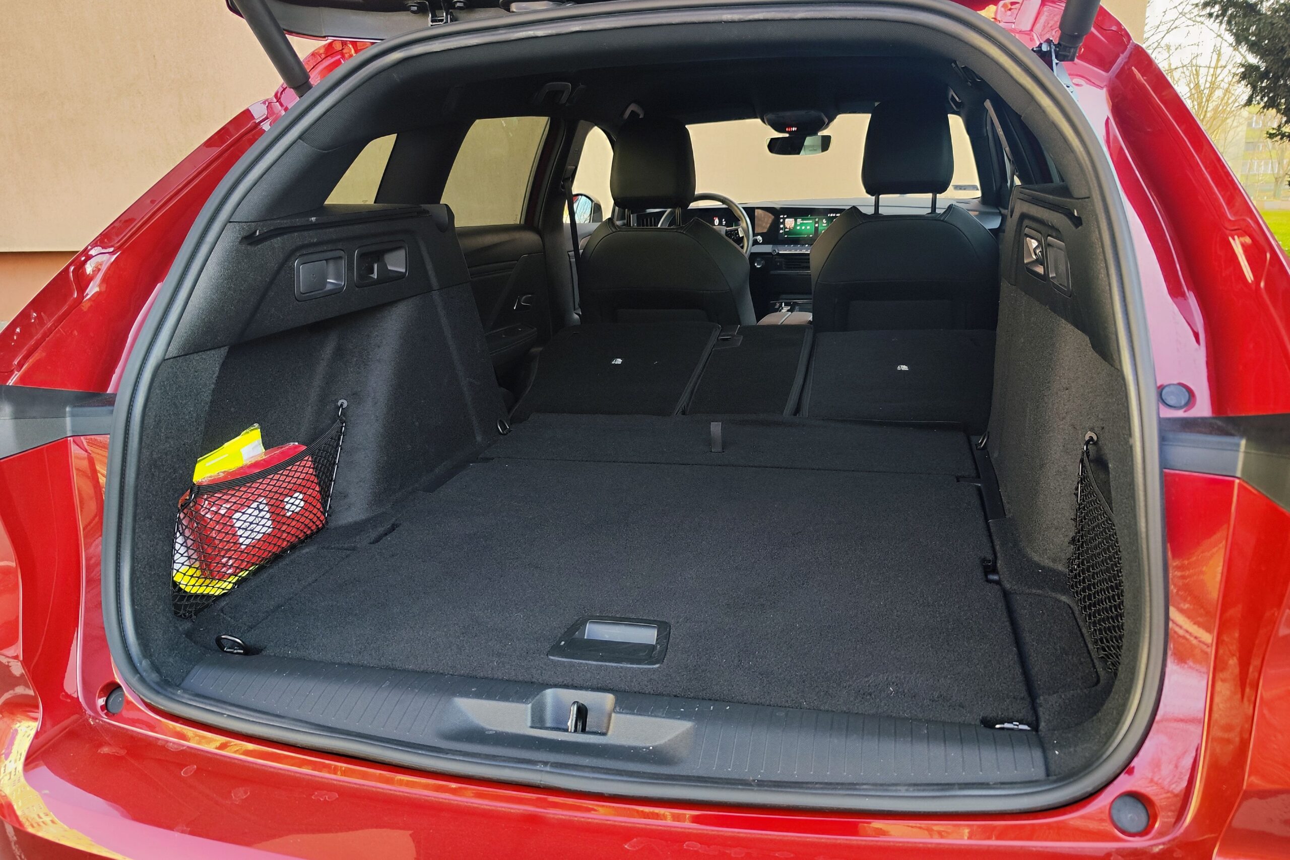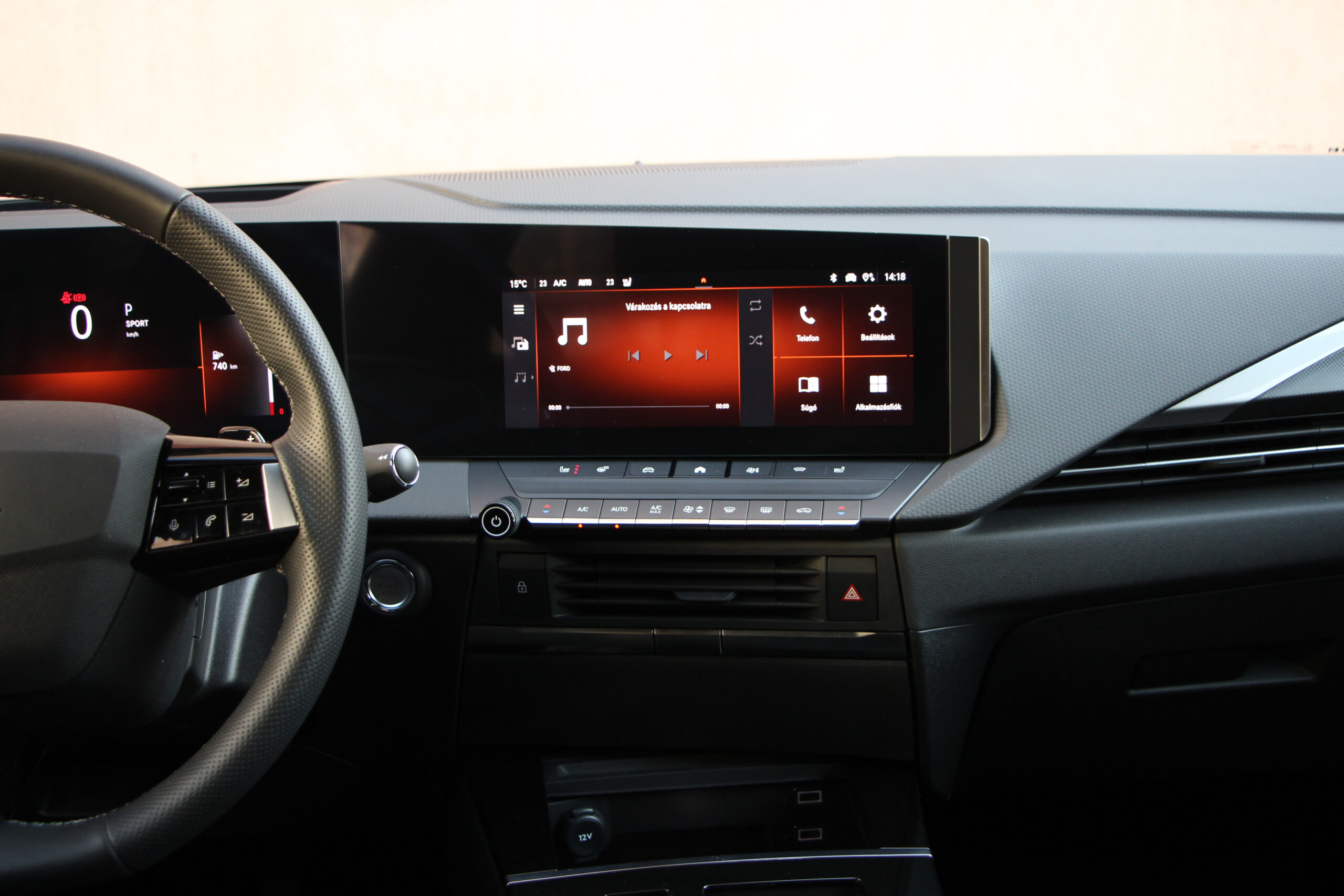 A hatalmas csomagtér mellett a hátsó hely sem piskóta, simán elférnek magas felnőttek is, elöl pedig az AGR minősítésű „fotelekben” lehet helyet foglalni. Ugyanakkor érezni, hogy elsősorban a Peugeot i-Cockpitjéhez szabta a Stellantis az üléspozíciót, de némi matatással azért mindenki a saját testalkatához tudja szabni, és akkor jól látható a digitális műszeregység a kormánykerék mögött, amit kiválthat a HUD. Az infotainment szintén érintőképernyős, de szerencsére maradtak fizikai gombok is, szóval nagyon egyszerű kezelni az Astra fedélzeti rendszereit. Az automatikus sebességváltó kapcsoló fogantyúja sem foglal sok helyet, úgyhogy a kartámasz alatti rekeszen kívül még pohártartó, egy külön tárolózseb és a vezeték nélküli telefontöltőnek is jutott külön zseb.