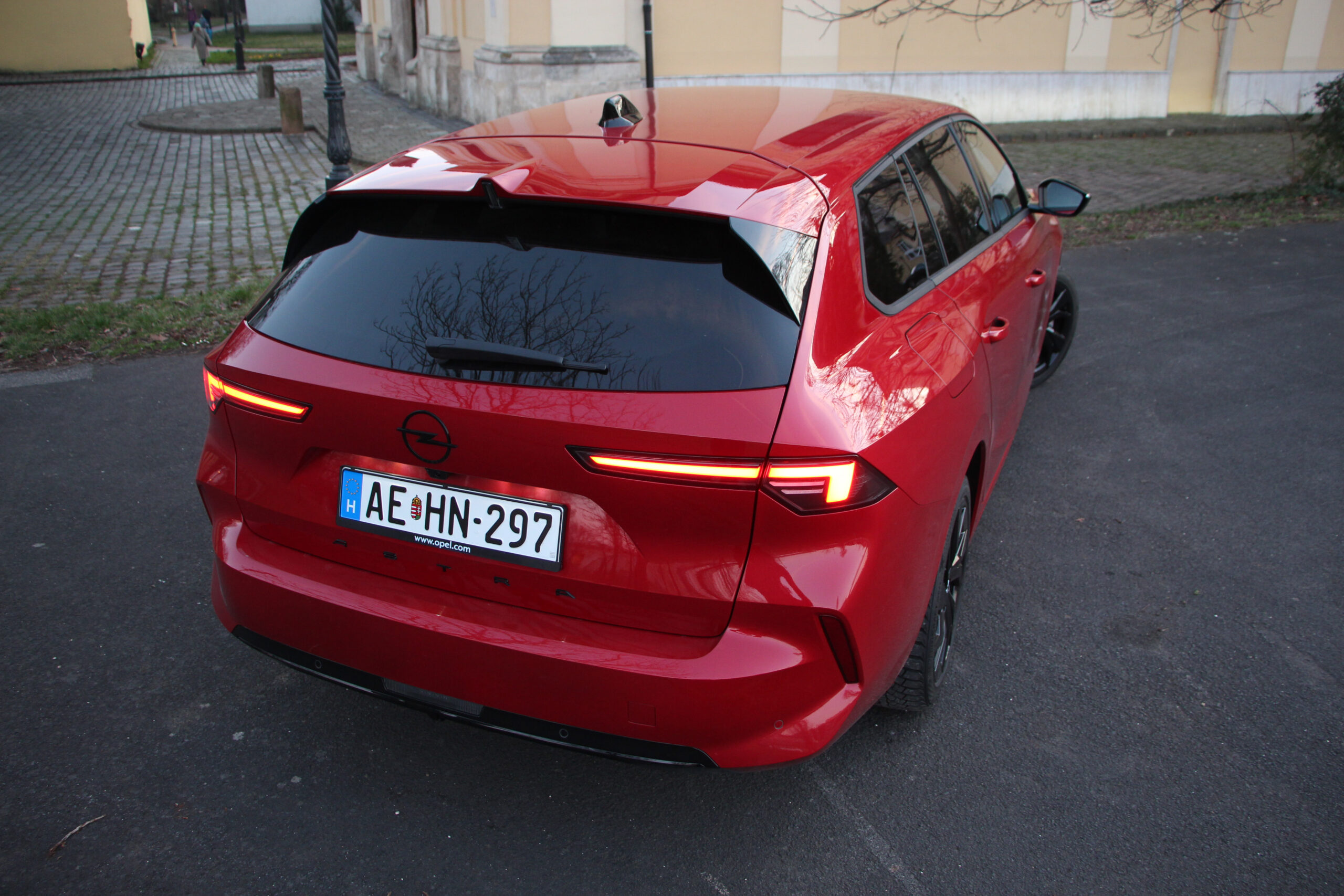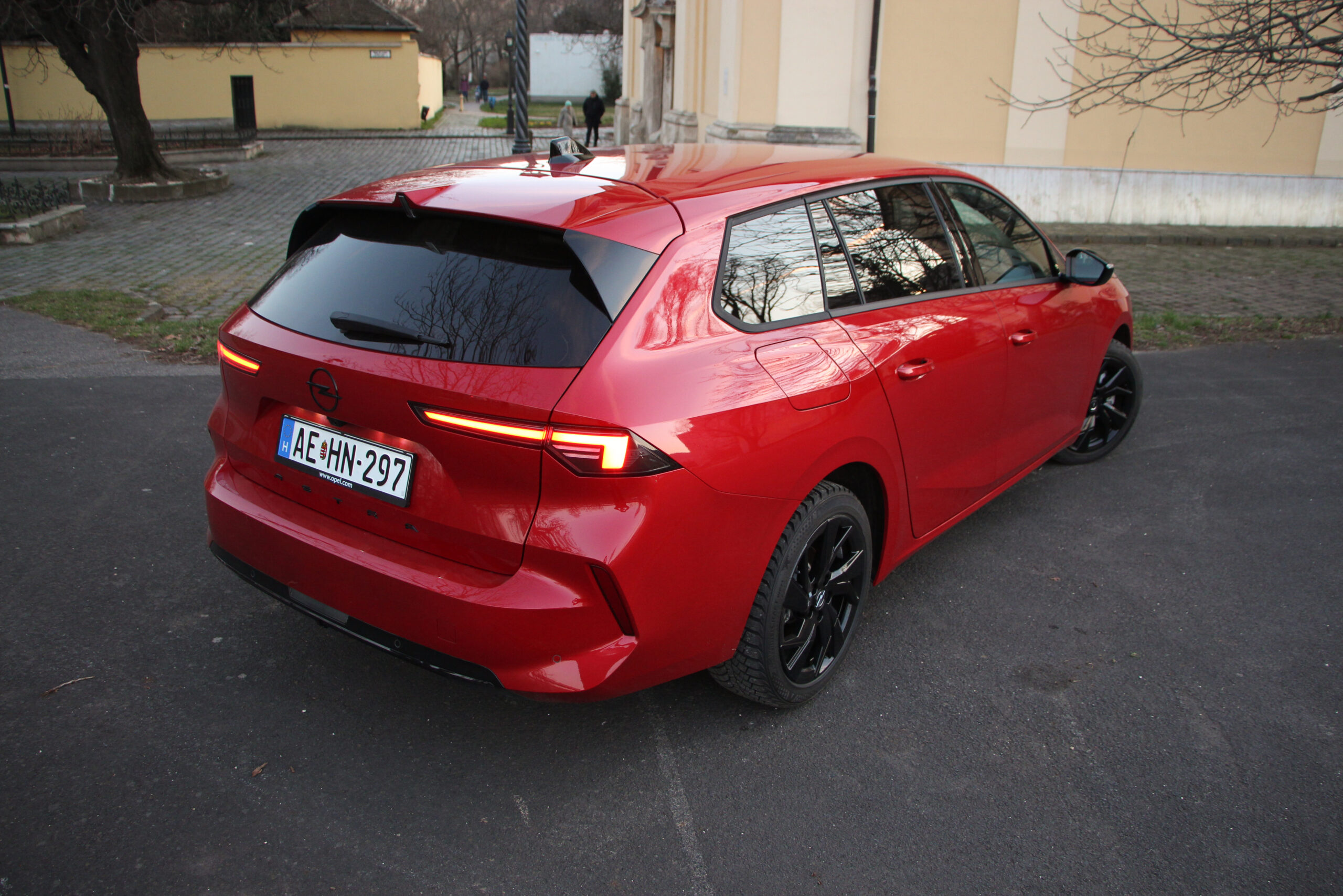Kezdhettem volna azzal az elcsépelt mondattal is, hogy a flottások kedvence, ám ez már változóban van a zöld rendszámok nyújtotta előnyök miatt, ugyanakkor a dízel még mindig ideális megoldás a flottavásárlók számára ezért a hazai importőr is nagy reményeket fűz hozzá, és nem véletlenül. A z autó egyébként a C-oszlopig megegyezik a többi Astrával. Vonalzóval rajzolt, de a Stellantison belül azért karakteres formatervét nem igazán érheti kritika. Ha tippelnem kell több embernek fog tetszeni, mint amennyinek nem. A kombi hátsóját ráadásul úgy toldották az autóhoz, hogy nem bántja a szemet. Egységes egésznek tűnik, ugyanazokkal a hátsó lámpákkal, lökhárítókkal, amelyek a ferdehátún is láthatók. A lényeg azonban a hossznövekedés, ami közel 27 centi (a tengelytávolság esetében 5,7 centi). A szélesség nem változott a magasság pedig csak 7 millimétert nőtt. Jó nagy csomagtérre számíthatunk akkor ugye?