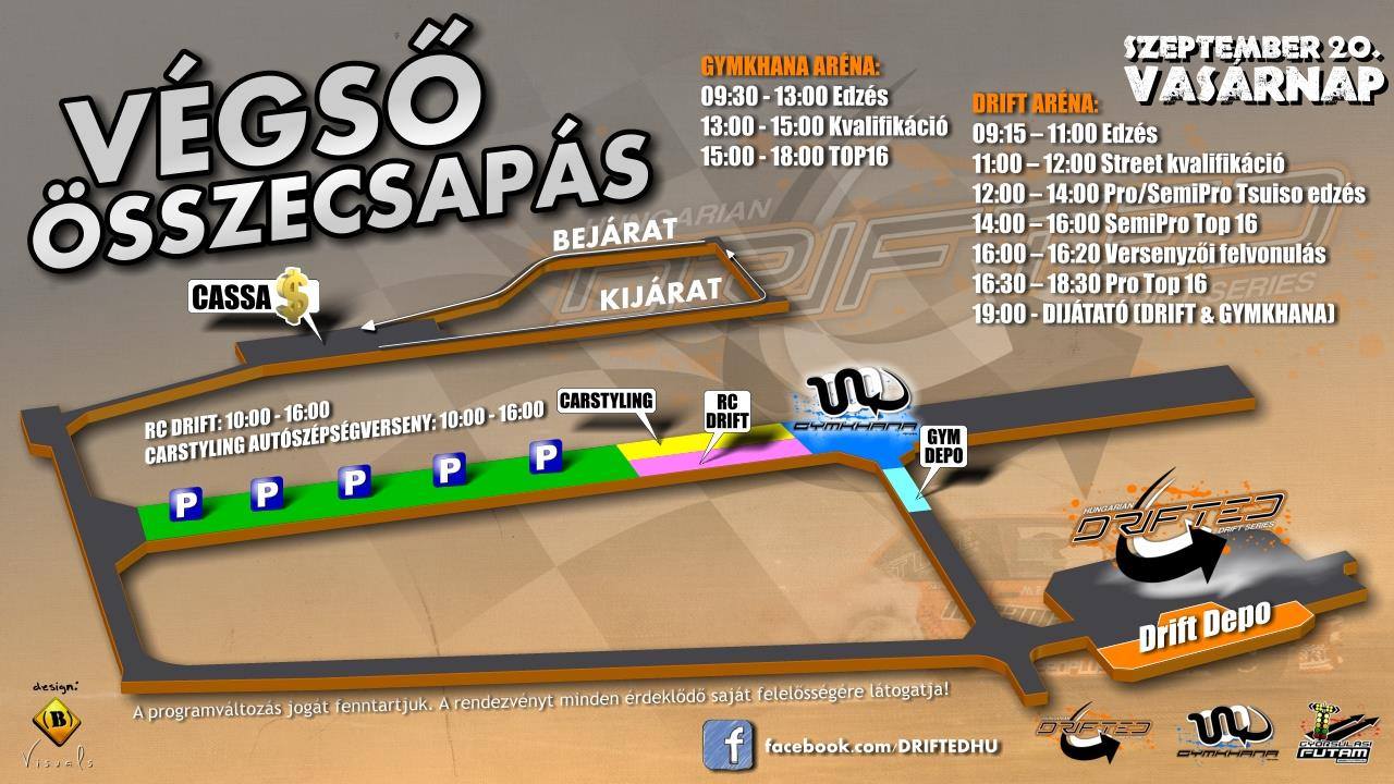 Végső összecsapás, azaz a drift évad zárófutamai Pro, SemiPro és Street kategóriában. Továbbá temérdek egyéb autós program e hétvégén, Tökölön.