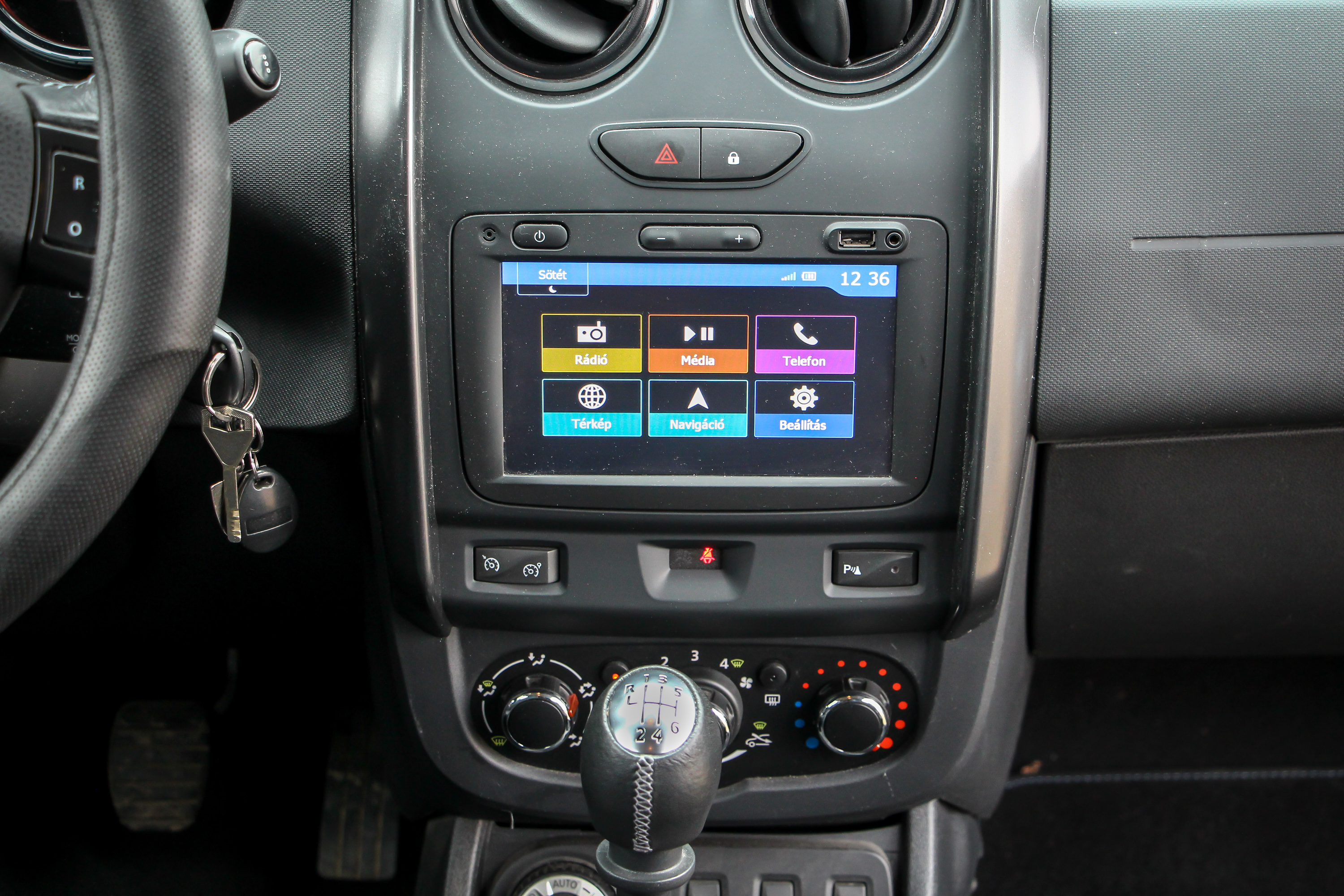Tempomat, érintőkijelzős navigáció és négy elektromos ablak is járt a majdnem csúcsfelszerelt Dusterhez. A navit kell néha frissíteni, de a legtöbb helyzetben teszi a dolgát, az ajtókárpit kemény