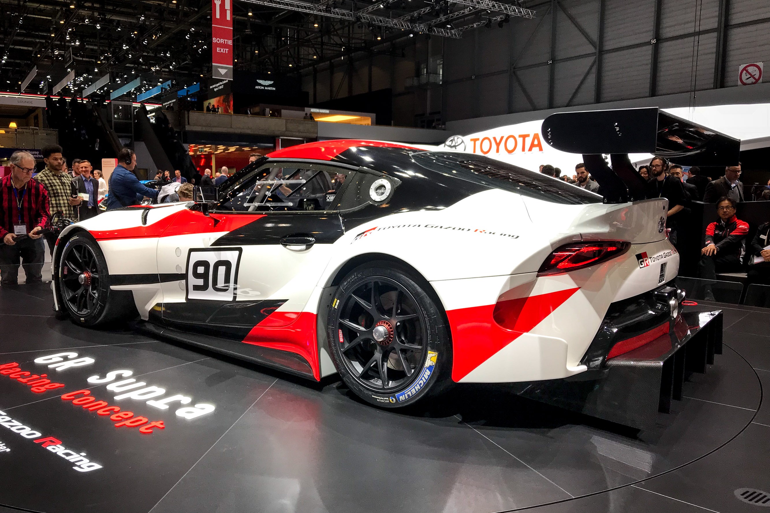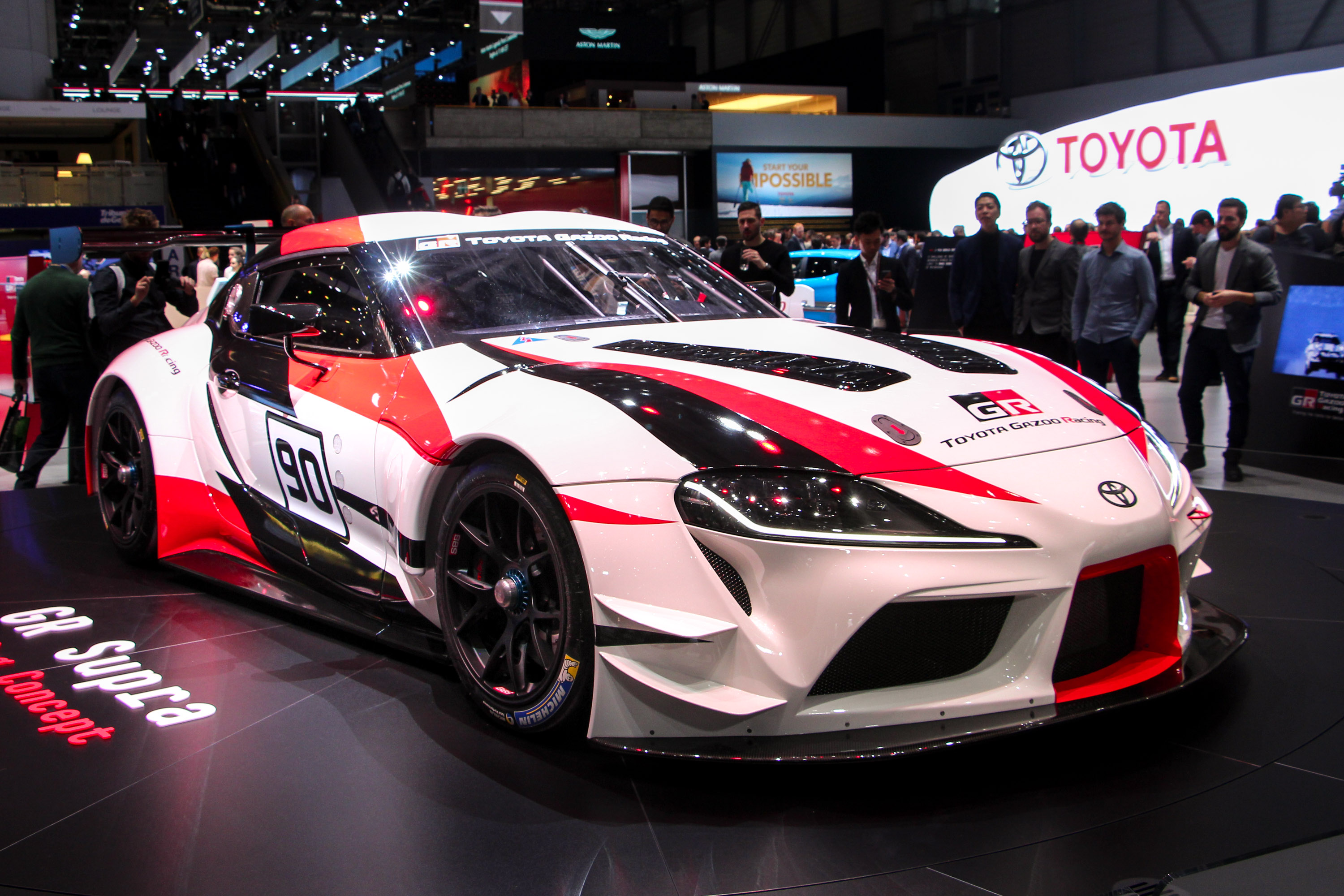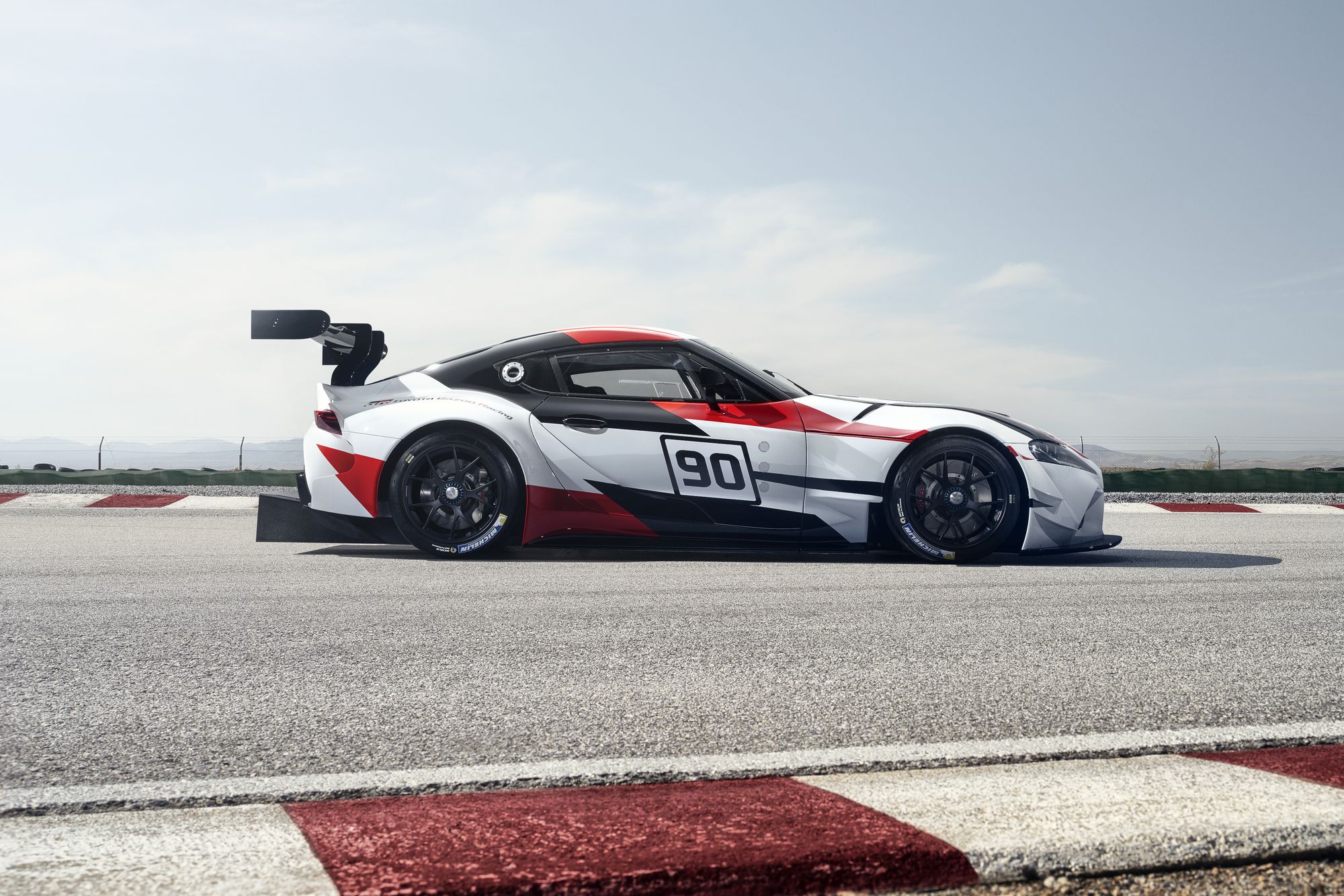 A Supra versenyautó tanulmány is maradt a jól megszokott orrmotor, hátsókerék-meghajtás képletnél és rengeteg könnyű anyagot használtak fel a megépítéséhez. Az autó oldalán látható 90-es szám történelmi utalás a Supra kódnevére. A versenyautó természetesen hatalmas hátsó légterelővel, látványos diffúzorral és a karosszérián mindenfelé felbukkanó aerodinamikai elemekkel rendelkezik, amelyek a pályán nagyon jól jönnek, viszont megnehezítik, hogy meglássuk benne az utcai verziót. Persze elöl a fényszórók, és a hátsó lámpák is árulkodóak, illetve az autó sziluettje sem fog változni, ám az utastérből lényegében még semmit nem láthatunk. Ahogy az egy versenyautó esetében illik, teljesen „kibelezték”. Csak a legszükségesebb dolgok maradtak meg, köztük a kagylóülés, a bukócsövek, a rengeteg gombbal felvértezett kormánykerék és egy leegyszerűsített középkonzol.