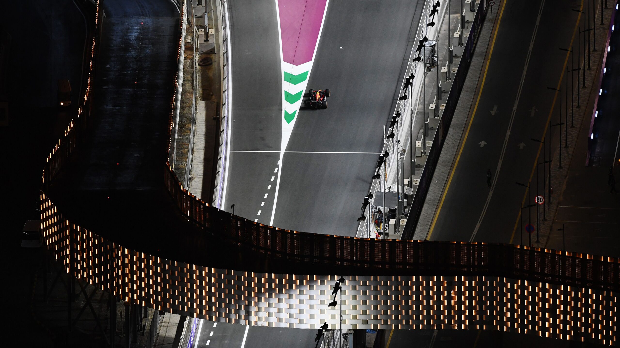A negyedik szaúdi verseny hű maradt rövidke történelméhez, és mindössze 7 kört kellett várni, hogy az Aston Martin biztonsági autót a pályára kelljen küldeni egy Aston Martin miatt, ugyanis Stroll a bal elsővel megütötte a falat, majd nyílegyenesen száguldott a techpro fallba, miután a törött felfüggesztés miatt irányíthatatlanná vált az autója. Verstappen vezényletével a mezőny nagy része a boxutca fele vette az irány, aki mögött Pérez szándékosan visszalassított annyit, hogy a csapat kényelmesen ki tudja cserélni mindkét autón a kerekeket, ám a taktika visszafelé sült el, és a két Red Bull közé befurakodott Hamilton, míg a vezetést Norris vette át, aki nem jött a pitbe.