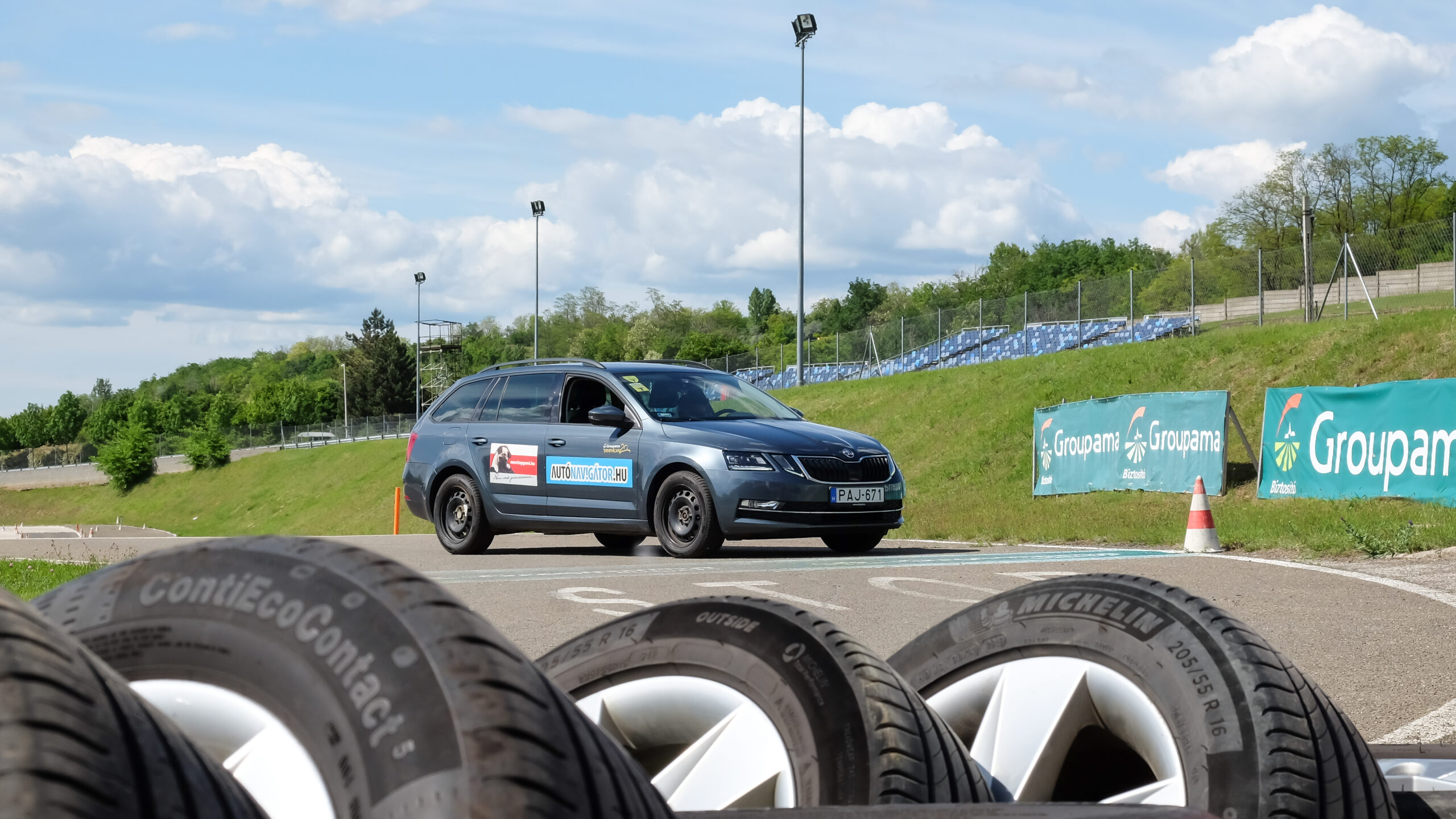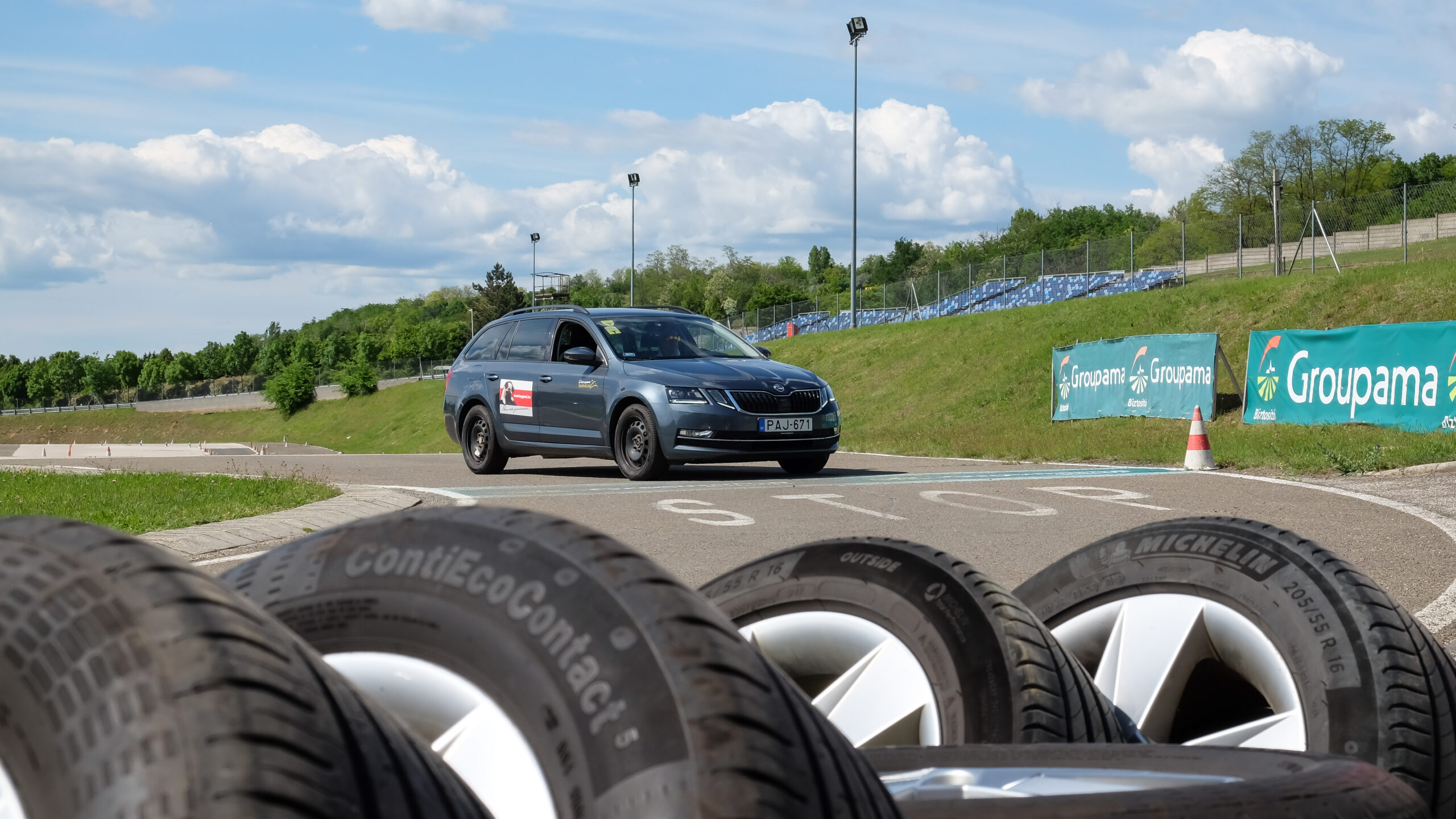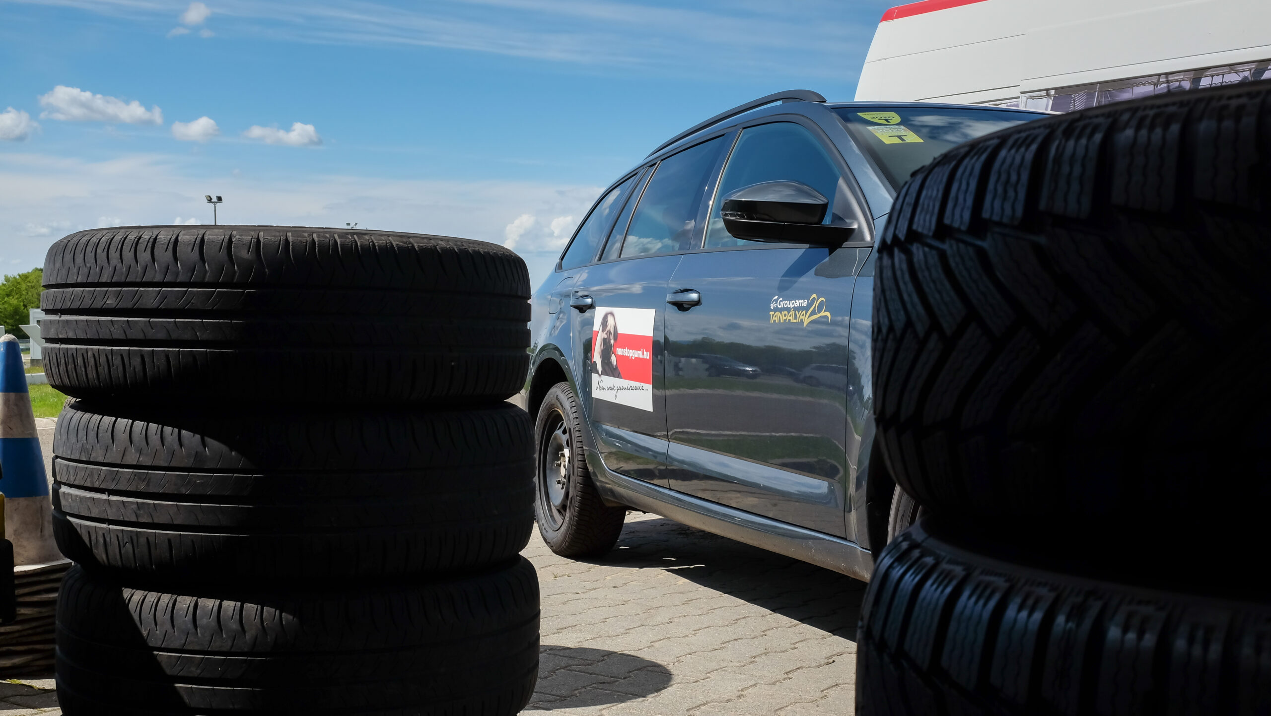 Szokásos helyszínen, a mogyoródi Groupama Tanpályán, Skoda Octaviákon teszteltük a Nonstopgumi által szállított és szerelt abroncsokat.