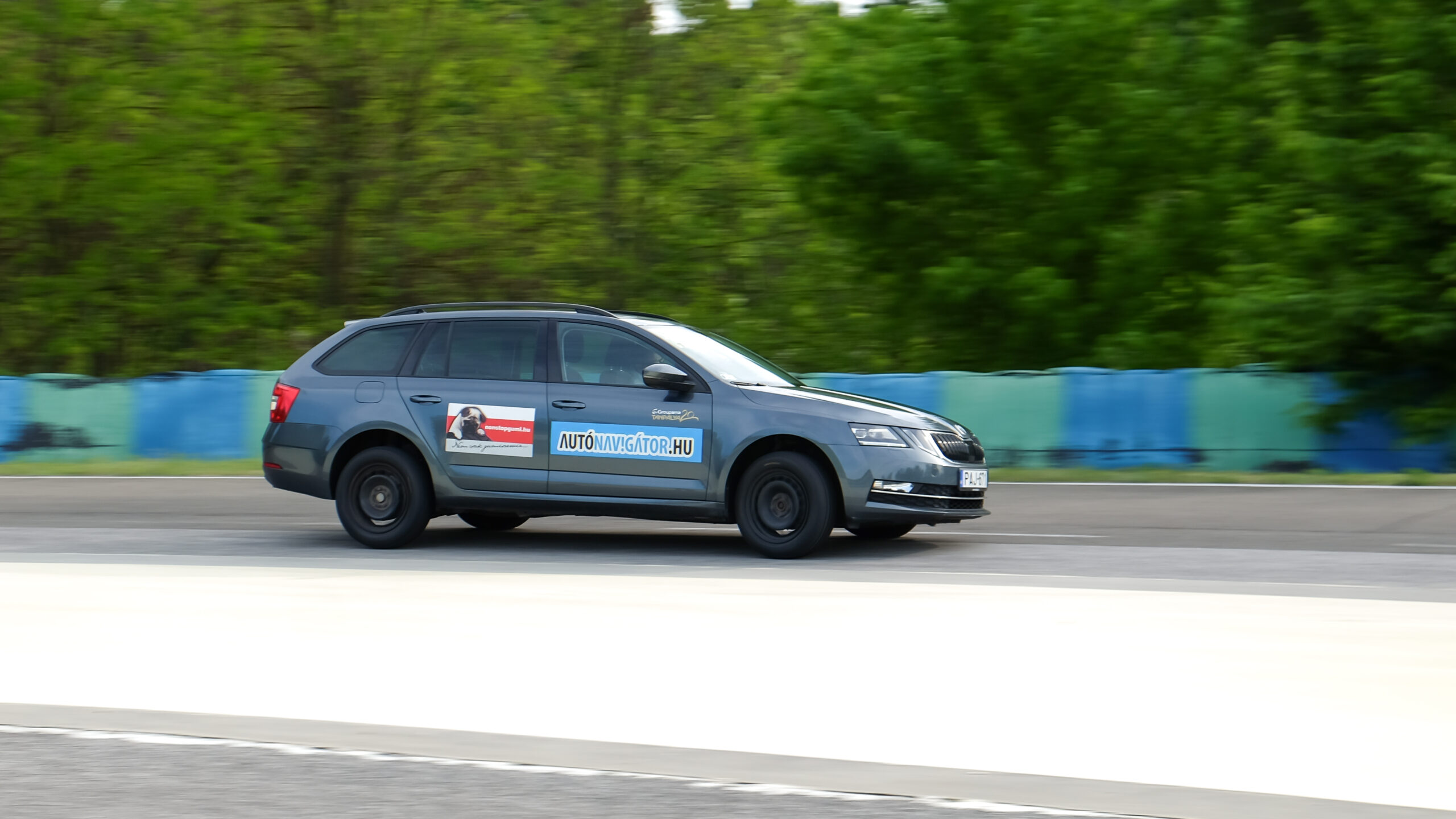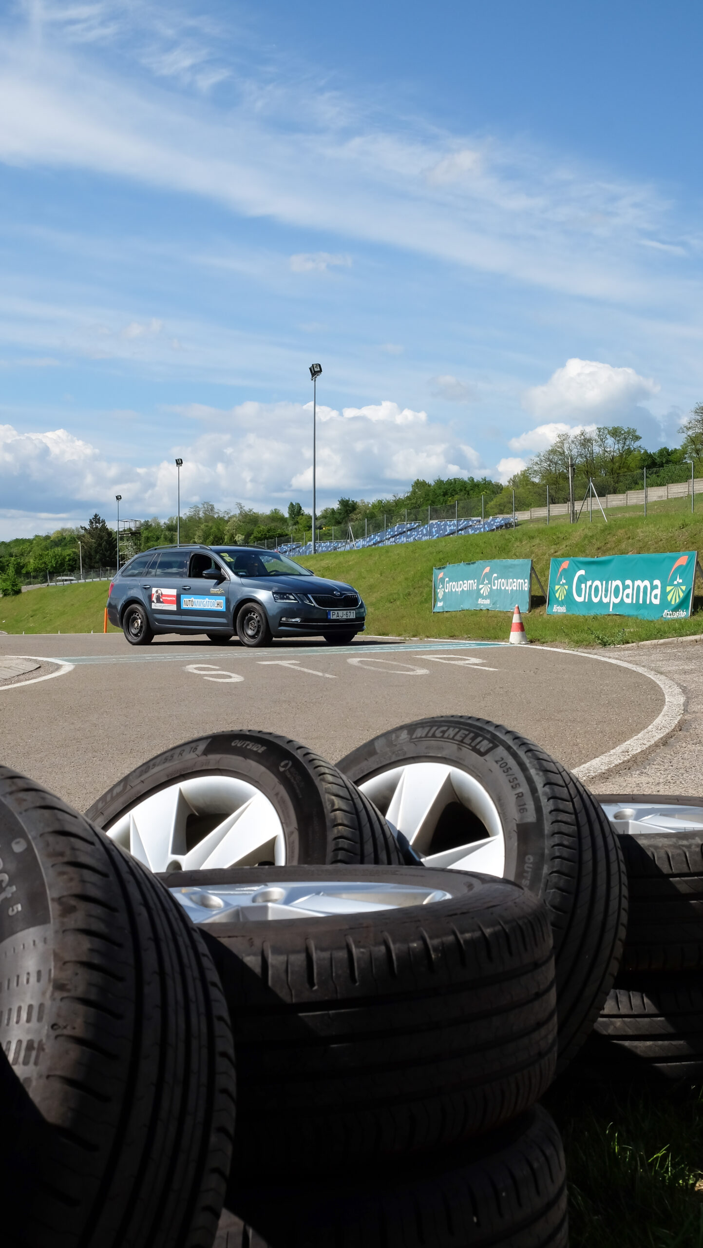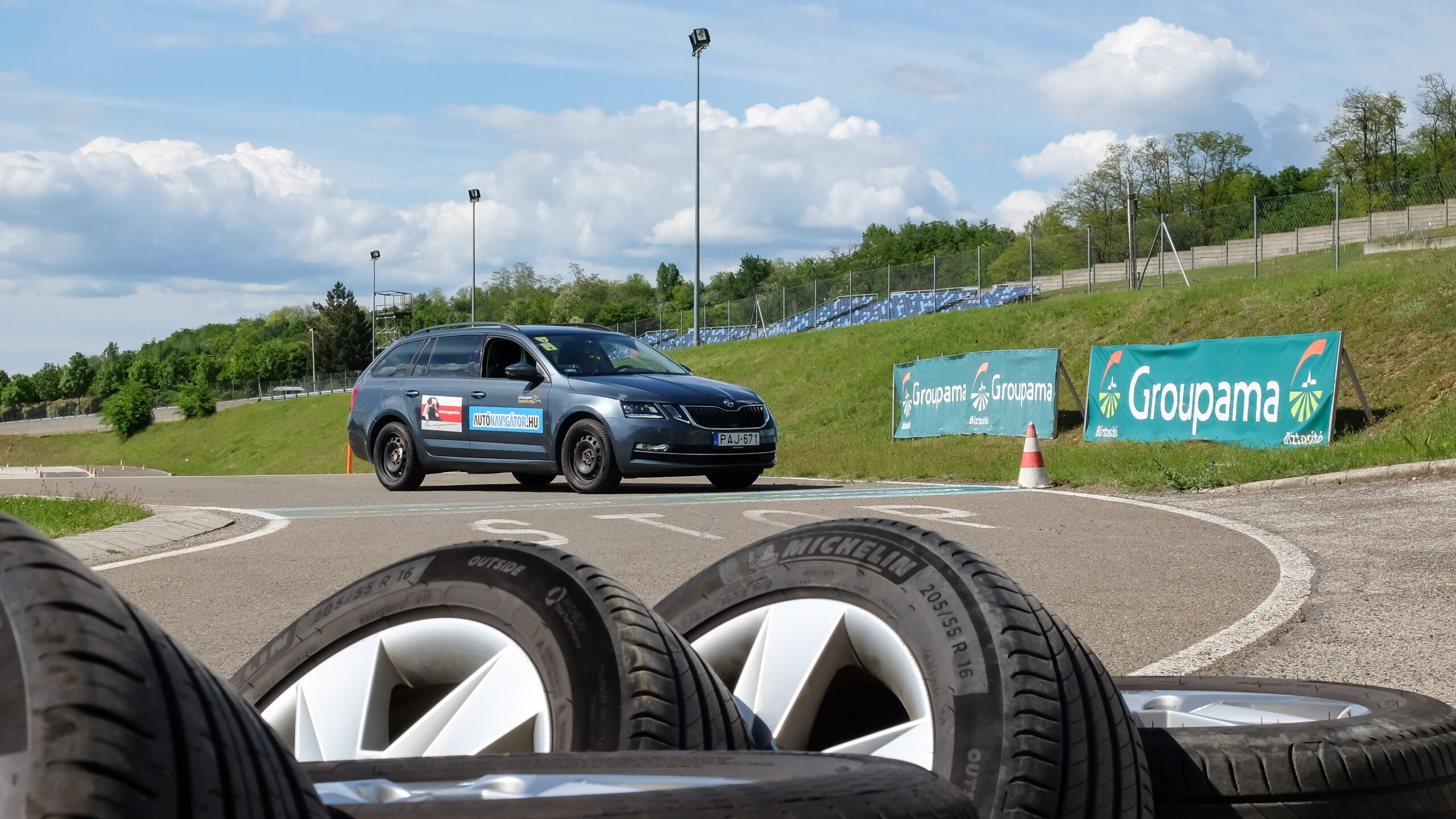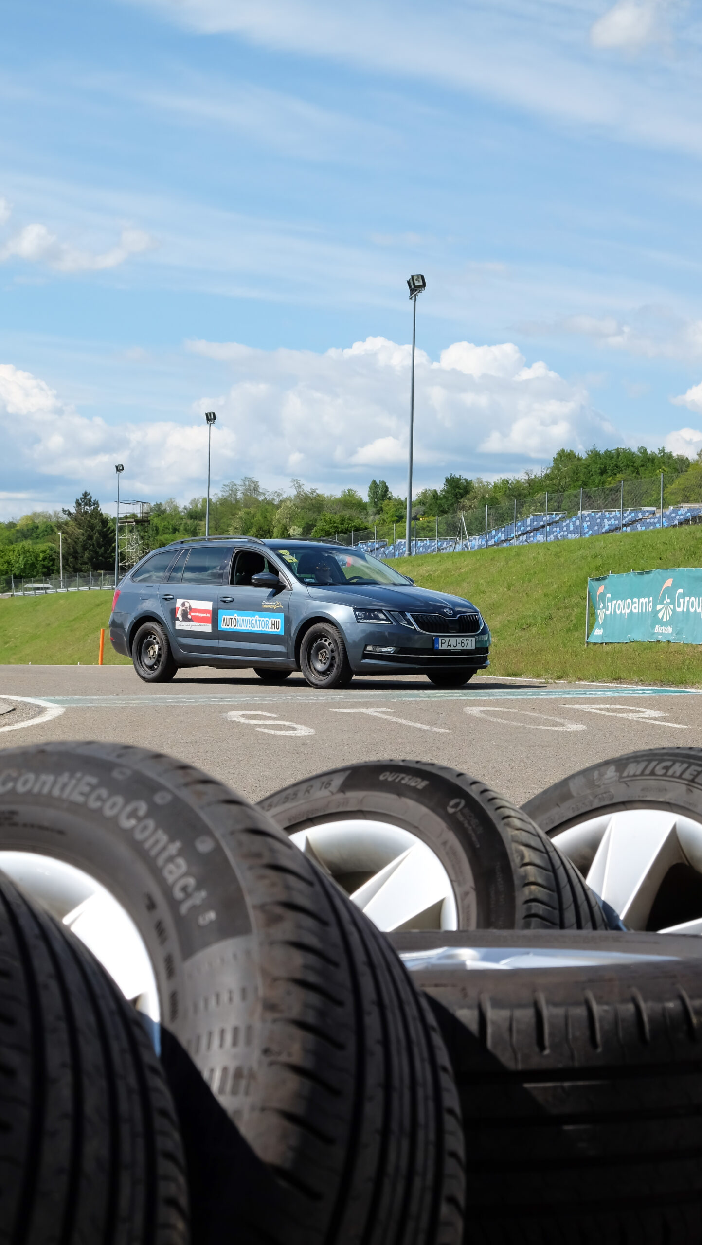 Szokásos helyszínen, a mogyoródi Groupama Tanpályán, Skoda Octaviákon teszteltük a Nonstopgumi által szállított és szerelt abroncsokat.