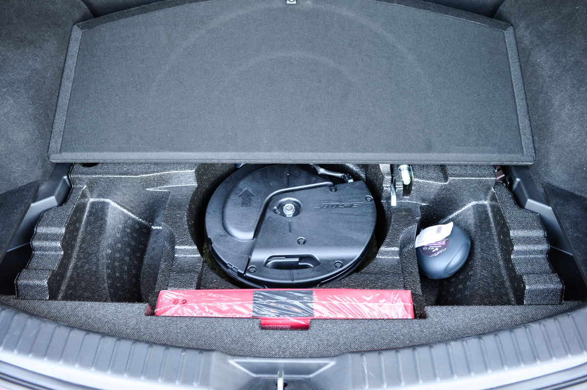 Telitalálat a sötét fabetét, még ha nem is igazi, jól mutatnak a Bose hangszórók a világos tetőkárpiton. Megvan a fennkölt hangulat