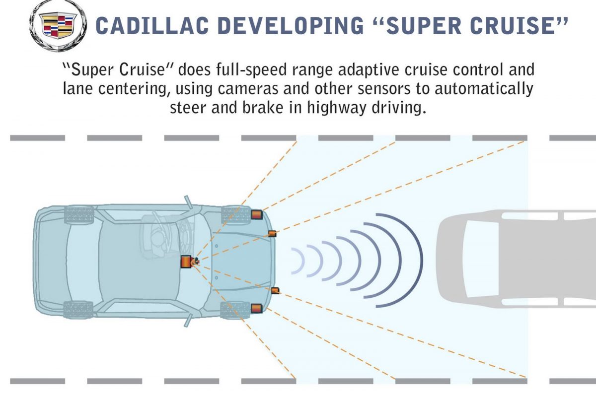 A rendszer, ahogy a mellékelt videón is látható és hallható, tulajdonképpen a már ma is ismert, és külön-külön vagy bizonyos esetekben kisebb egységekben összesítve kapható baleset-elkerülő, forgalom- és sofőrfigyelő, járművezérlő rendszereken alapul. A Cadillac beszámolója szerint egyelőre optimális körülmények között – ez feltehetően szabálykövető közlekedőtársakat és nem túl sűrű forgalmat jelenthet – már majdnem teljesen önálló kormányzásra, fékezésre és sávtartásra képes a Super Cruise. Mindehhez kellett a jármű teljes sebességtartományában működőképes távolságtartós tempomat, egy halom radar, érzékelő, kamera és GPS-jel, valamint térképadat, a sofőr pedig a tengerentúli luxusmárka idén bevezetett érintőképernyős és hangvezérlésű CUE rendszerével avatkozhat közbe.