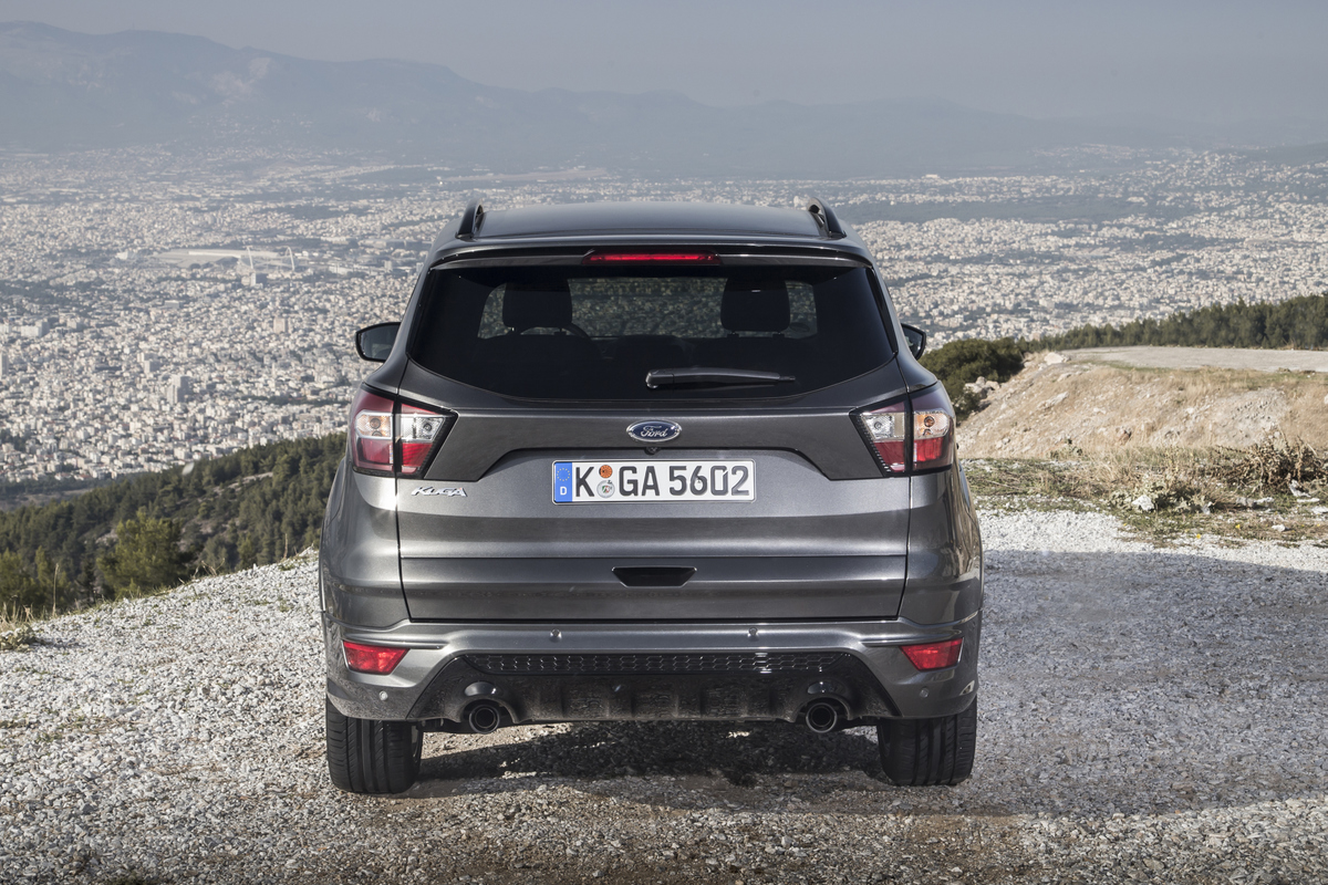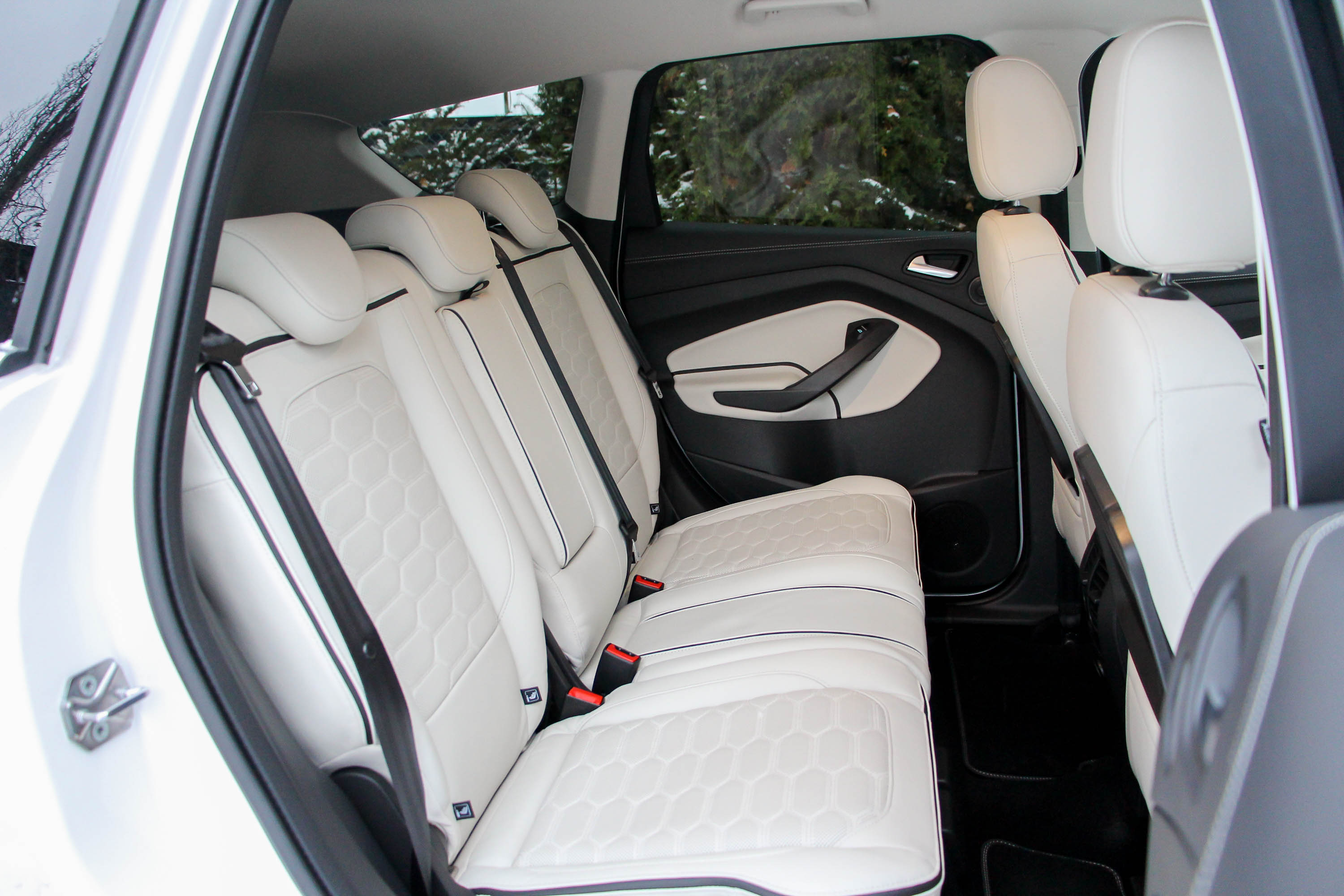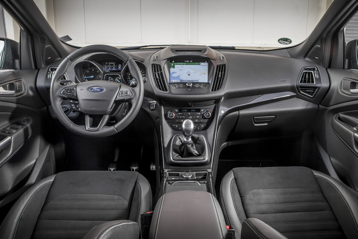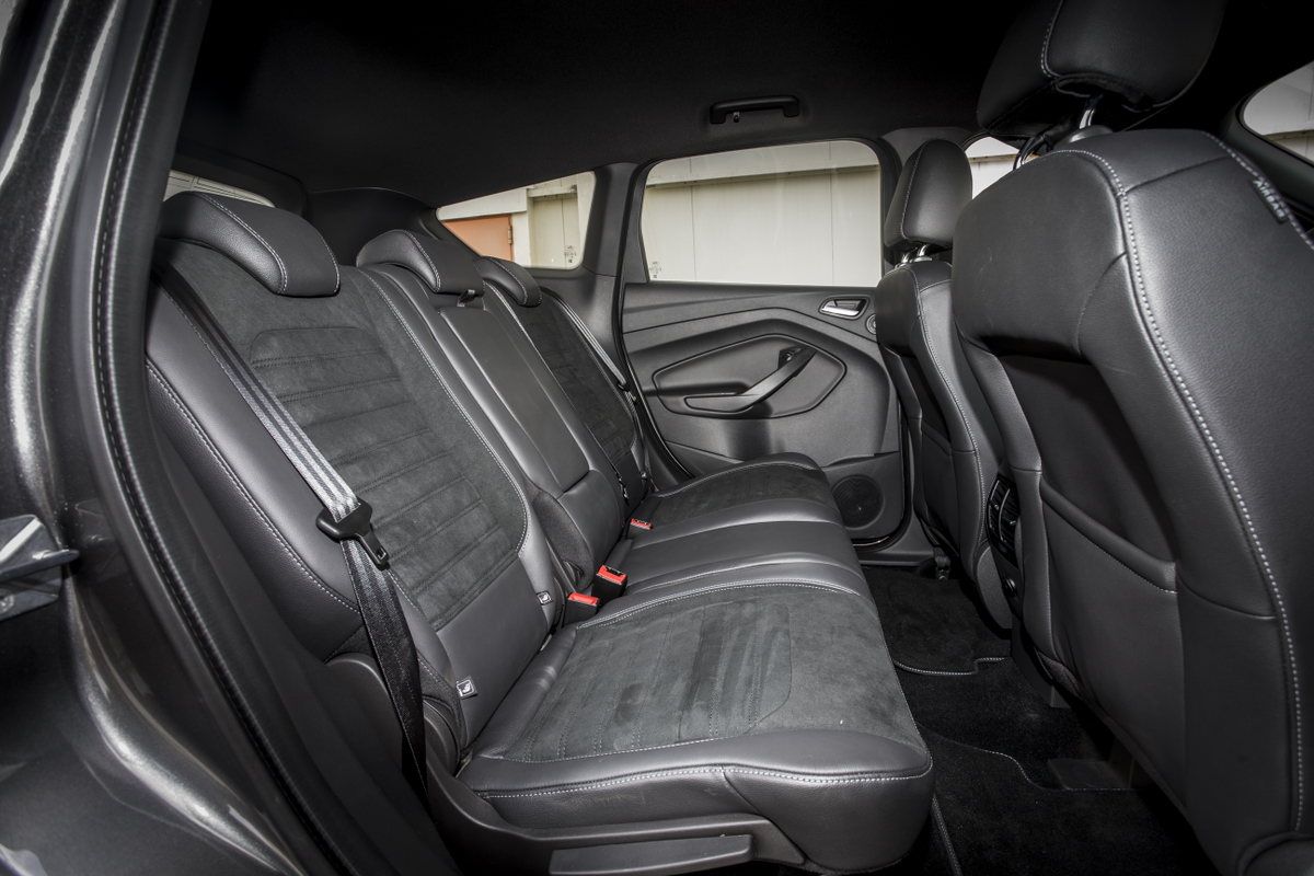 Mind a Vignale, mind az ST-Line 1 centivel hosszabb az „alap” Kugánál, de mindegyik verzióról elmondható, hogy 1,7 méter magasságával és 1,84 méteres (tükrök nélküli) szélességével meglehetősen monumentális. Belterében ennek és 2,69 méteres tengelytávjának ellenére nem vészesen tágas. Hosszasan, vaskos középkonzollal nyújtózik a műszerfal, átlagos termettel még elegendő a hosszanti helykínálat, átlag fölöttivel már nem. A hátsó középső ülőhely a kategóriában megszokottnál is csenevészebb. A csomagtartó 456 literes alapmérete nem kimagasló, ülésdöntéssel már 1603 literes, de nem sík padlójú teret kapunk.