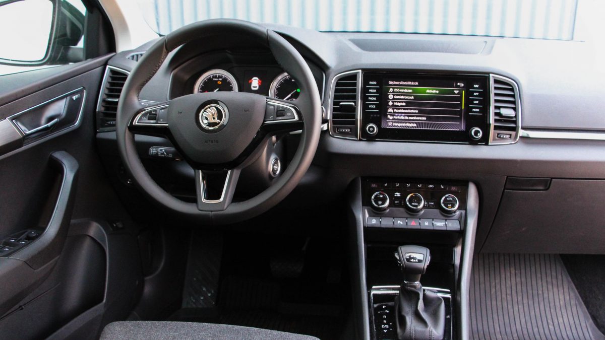 A kétliteres dízel ugyanúgy 150 lóerős, mint a másfél literes benzines, ám jóval nyomatékosabb annál. Már 1750-es fordulattól jelentkezik a 340 newtonméter és a hétfokozatú DSG is jól végzi a dolgát, szóval igazán dinamikus az autó, ám ez nem jelenti azt, hogy sportos. A Karoq egy józan családi autó, amely még véletlenül sem próbál másféle karaktert hazudni magáról. A kormány kicsit érzéketlen, viszont a futómű rendkívül kényelmes, bár a tempós kanyarokban érezhetően dől a kasztni, ami gyorsan elveszi a sofőr kedvét a száguldozástól. Ugyanakkor a dízel hangos kerregése a komfortot rontó tényező. Az utastér hangszigetelését nagyon jól oldották meg, de bármennyire is vaskos a szigetelés, az én benzineshez szokott fülemnek a gázolajos motor hangja tolakodó. Kivéve autópályatempónál, illetve, amikor egyenletesen halad az autó, akkor kevésbé zavaró, mint a sűrű gyorsításokkal tűzdelt városi használat során. A DSG sebességváltó egyébként nagyszerű szerkezet, amely a takarékosságra törekszik mindenek felett, viszont a tesztautóban sajnos már furcsa hangokat produkált a szerkezet. Furcsa és egyáltalán nem bizalomgerjesztő hangokat, miközben eddig csak 10 ezer kilométert futott a jármű. A testes Karoq máskülönben körülbelül hét liter gázolajjal is beéri, amennyiben a vegyes üzem több országutat és autópályázást tartalmaz. Városban ugyanis képes felszökni akár 10 liter közelébe is a fogyasztás, persze köztudottan nem a dízelmotoroknak való a városi szaladgálás.