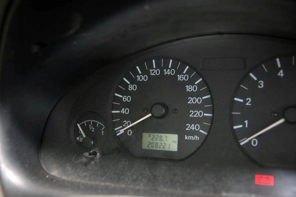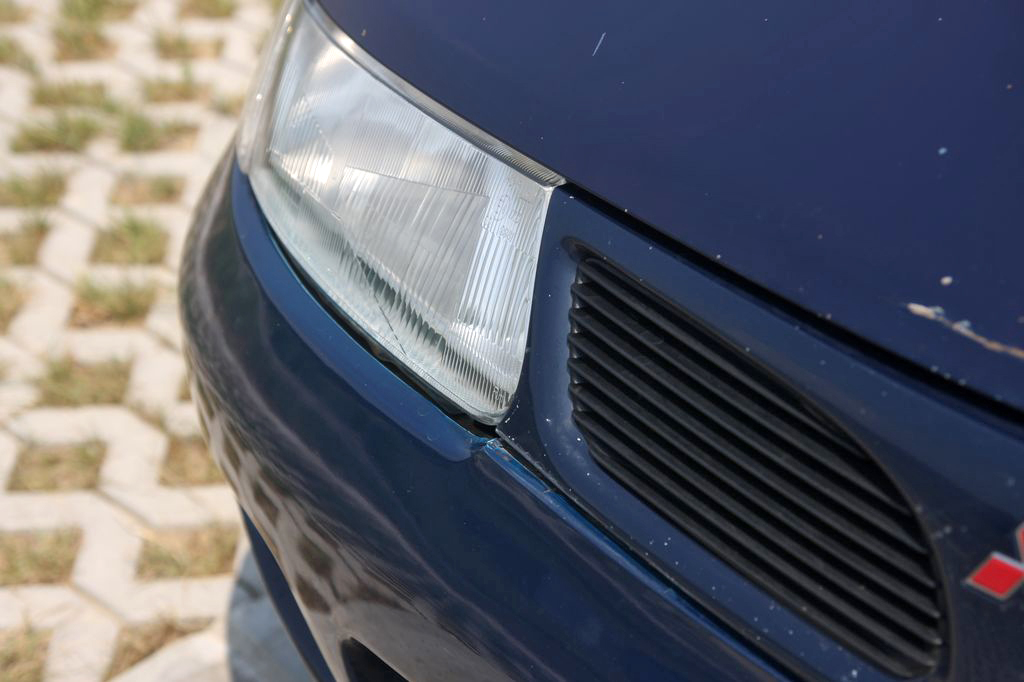 Mi ezúttal a piac (érvényes magyar forgalmival, nem törött állapotban) legolcsóbbjának számító példányát néztük meg és vittük el egy tesztkörre, ötajtós volt. Tisztes távolság kell, hogy az áruházi dísztárcsákkal, láthatóan újrafújt lökhárítókkal felvértezett példányt épnek lássuk, rozsda szemmel láthatóan található a lökhárítók alatt. Az illesztési hézagokból és a betétekkel, lámpákkal sem bélelt első ködfényszóró-fészkekből egyértelműen látható, hogy a bármikor, de kánikulában főként könnyedén adódó kisebb koccanások bizony lehettek az előéletben; nagyobbnak azonban nincs nyoma. Rétegvastagságot mérni szinte fölösleges, a karosszérián láthatóak ködölések, a bemattult bal első sárvédő fénye gyári és elrontott utólagos munka is lehet, sehogy sem szép. Akadnak továbbá kisebb karcolások, a jobb első ajtón horpadás is, de azért semmi komoly.