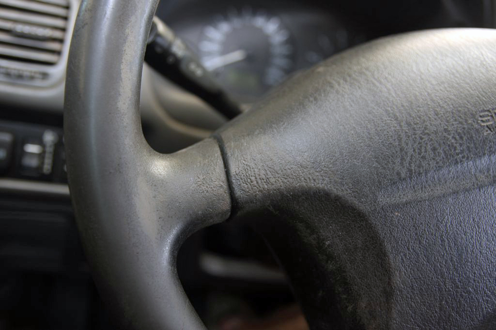 Nem kopásmentes, kissé már málladozó a habosított műanyag kormánykerék