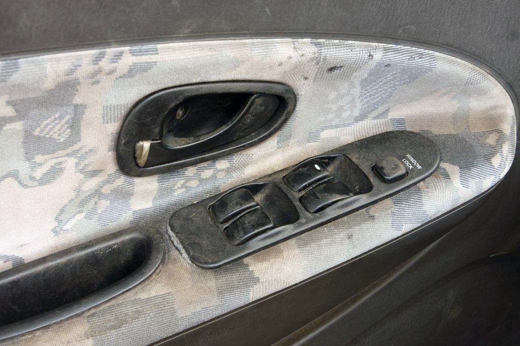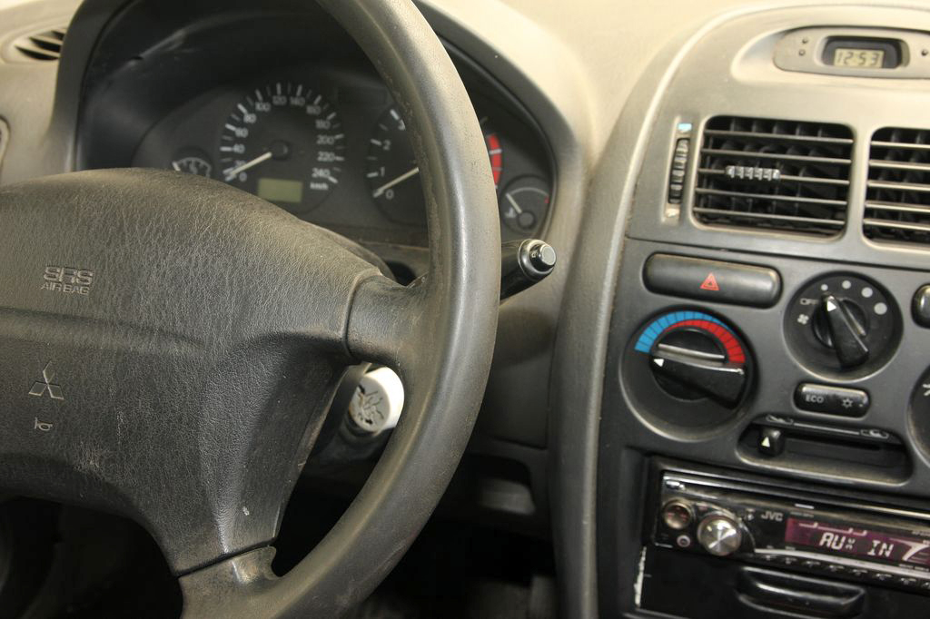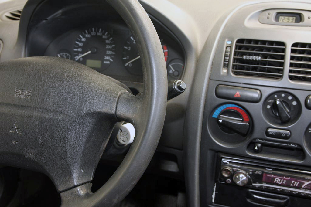Az ajtókat feltárva már kevéssel sokkal ijesztőbb a kép, bár az autó jól felszerelt, négy légzsák, négy elektromos ablak, két elektromos, fűthető tükör és mintegy két évnyi por is van az utastérben. A sofőr ülése érezhetően kiült, a kormány kissé málladozó, az állapot egy percig nem akarja feledtetni a kilométer-számlálóban olvasható 208 ezer kilométert. Sok apróság van ráadásul, ami még riasztóbbá teszi az autót, a gyári kulcsfej-ház helyett egy üdítős palack kupakja rejti az eredeti indításgátló jeladóját, a gépháztető kallantyú helyett már csak egy bowdenvéggel nyitható, és az igazi feketeleves most jön: a klíma rossz, a sofőroldali ablak az elektromos emelő hibája miatt nem leengedhető. Aki kacérkodik a Carismával, az kánikulai napokon késő esti vagy hajnali időpontot kérjen a megtekintésre. Mi elrontottuk, délben néztük meg, s a próba utáni pillanatokban kínzókamraként pillantottunk vissza a sötétkék ötajtósra.