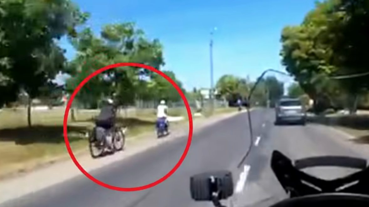 Egy egész csoportnyi kerékpáros tekert a forgalommal szemben, a 71-es számú főút menetirány szerinti bal oldalán, Balatonfüred környékén, ráadásul sűrű forgalom mellett. Mindezt egy motoros rendőr sisakkamerája is rögzítette, aki haladéktalanul megállította a csoportot és intézkedés alá vonta őket. A videón is hallatszik, ahogy az egyenruhás felhívja a figyelmet a rendelkezésre álló kerékpárútra is, amelyet a kerékpárosok nem használtak.