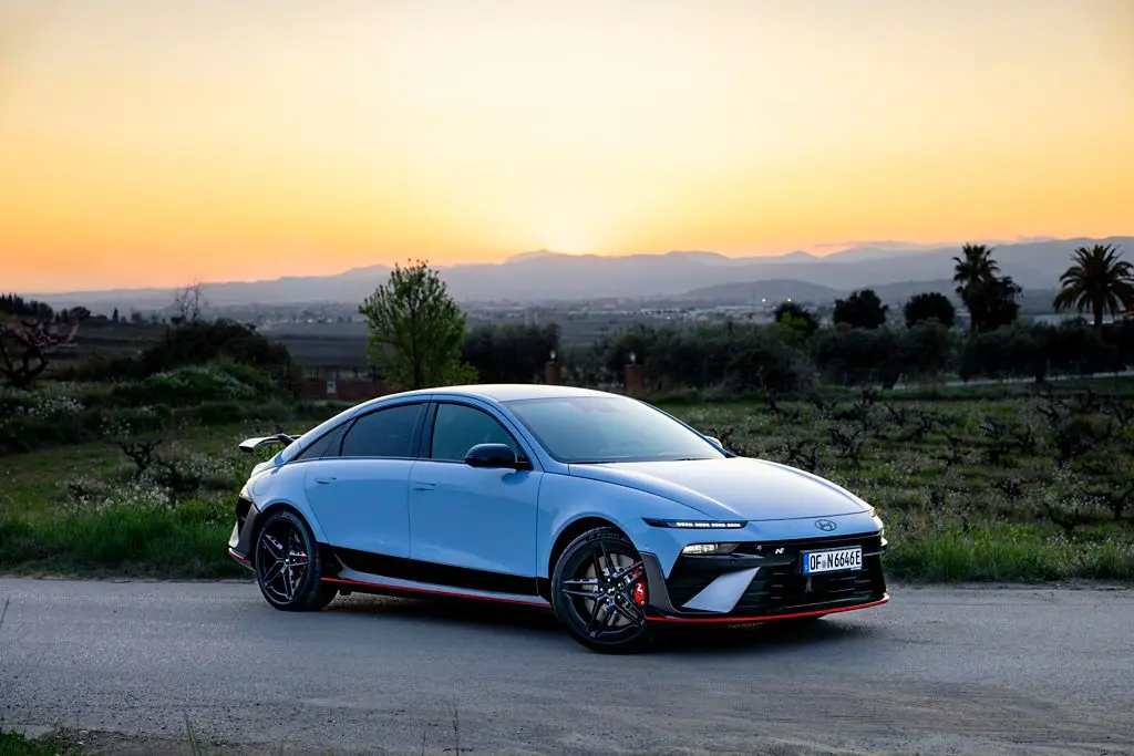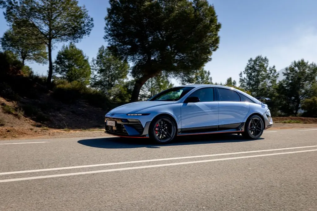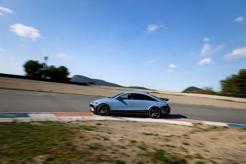 Az IONIQ 6 N közel 5 méter hosszú (4935 mm), majdnem két méter széles (1940 mm), de jóval alacsonyabb az ötösnél, hiszen csak 1,49 méter magas. A tengelytávolsága pedig a 3 métert közelíti (2965 mm). A számuk önmagukban csak arra jók, hogy körülbelül elhelyezhesd a kategóriák között, de ha azt mondom, hogy a karaktere nagyon hasonló a túraautó versenyek aranykorának számító Super Touring Car korszak gépeihez, akkor az értő közönség valószínűleg sokkal jobban el tudja képzelni, milyen jól sikerült a formaterv. Az egyik legjobb arányokkal megáldott villanyautó, amit valaha láttam.