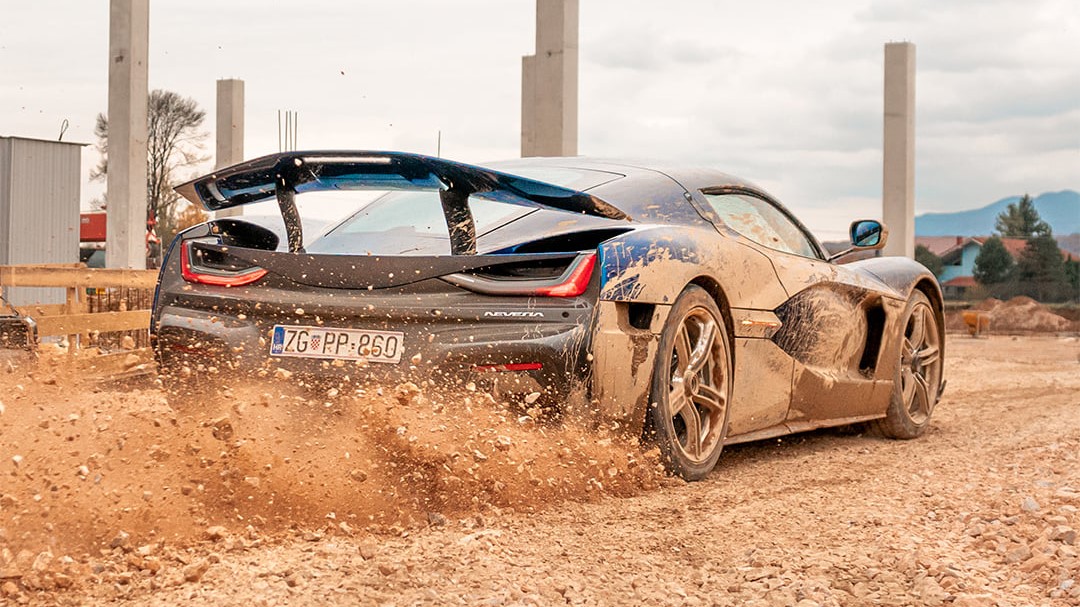 A Bugatti-Rimac központ építési területén alaposan meghajtottak egy Neverát, ami egészen jól bírta a szokatlan igénybevételt. A sem érdemi hasmagasággal, sem terepszögekkel nem rendelkező sportkocsit a cég tulajdonosa hajtotta meg, aki nem tagadta meg magától az élvezetet. Padlógázon, olykor driftelve járta körbe a területet, amit egészen jól bírt a sportkocsi, a tetejéig sárosan, de épp karosszériával megúszta a kalandot. A videóban szereplő autó egy prototípus, aminek a napjai már amúgy is meg vannak számlálva, így legalább méltón búcsúzik az “élők” sorából. A konkrét példányt töréstesztnek vetik alá, amire az amerikai homologizáció miatt van szükség.