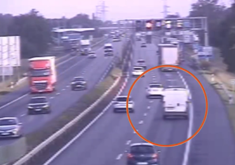Még májusban rögzítette az útkezelő egyik forgalomfigyelő kamerája az alábbi balesetet az M1-es autópályán. A felvételen jól látható, amint a külső sávban feltorlódott a sor az egyik lehajtónál. Nem sokkal később feltűnik egy fehér furgon is, amely már a csattanás előtt is érdekes íven autózik. A vezetője későn észlelte a sávban várakozó kamiont, majd nagy tempóval a szerelvény bal hátuljának csapódott. Végül a belső szalagkorlát fogta meg a roncsot. Szerencsére a közvetlen környezetükben senki sem tartózkodott, így a mögöttes forgalom még időben le tudott fékezni. Az MKIF tájékoztatása szerint a balesetben csodával határos módon senki sem sérült meg.