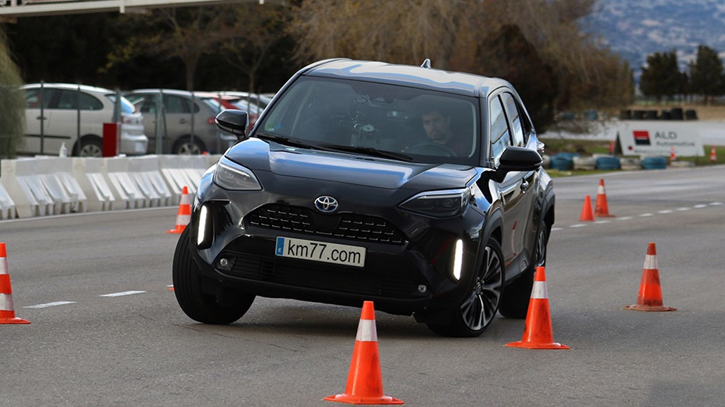 A Yaris Cross is megmutatta, hogy megy neki a hirtelen irányváltoztatás, a teszt során megfelelő stabilitással, kellően nagy sebességgel és némi játékossággal teljesítette a pályát.