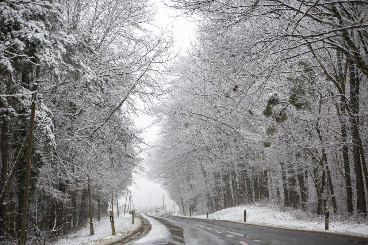Látványos téli tájakra és csúszós utakra számíthatunk a hétvégén, a téli gumi erősen ajánlott (Fotó: MTI/Varga György)