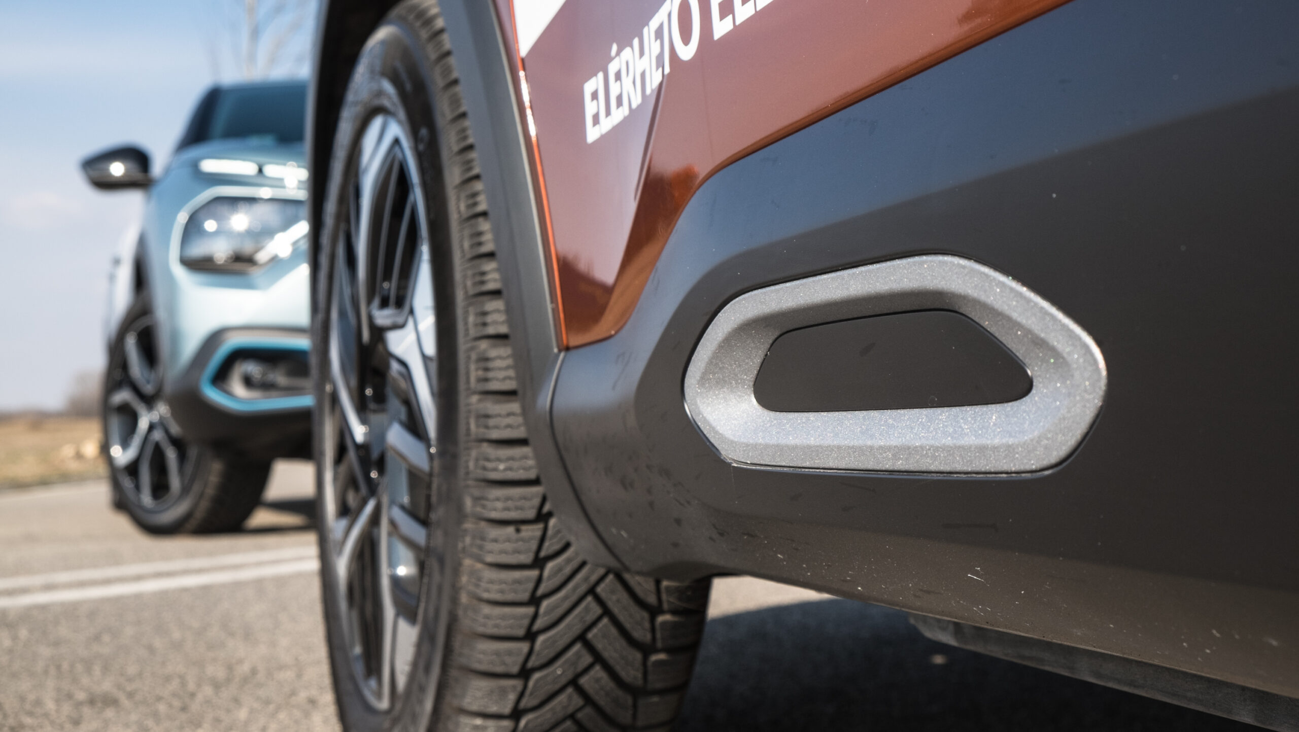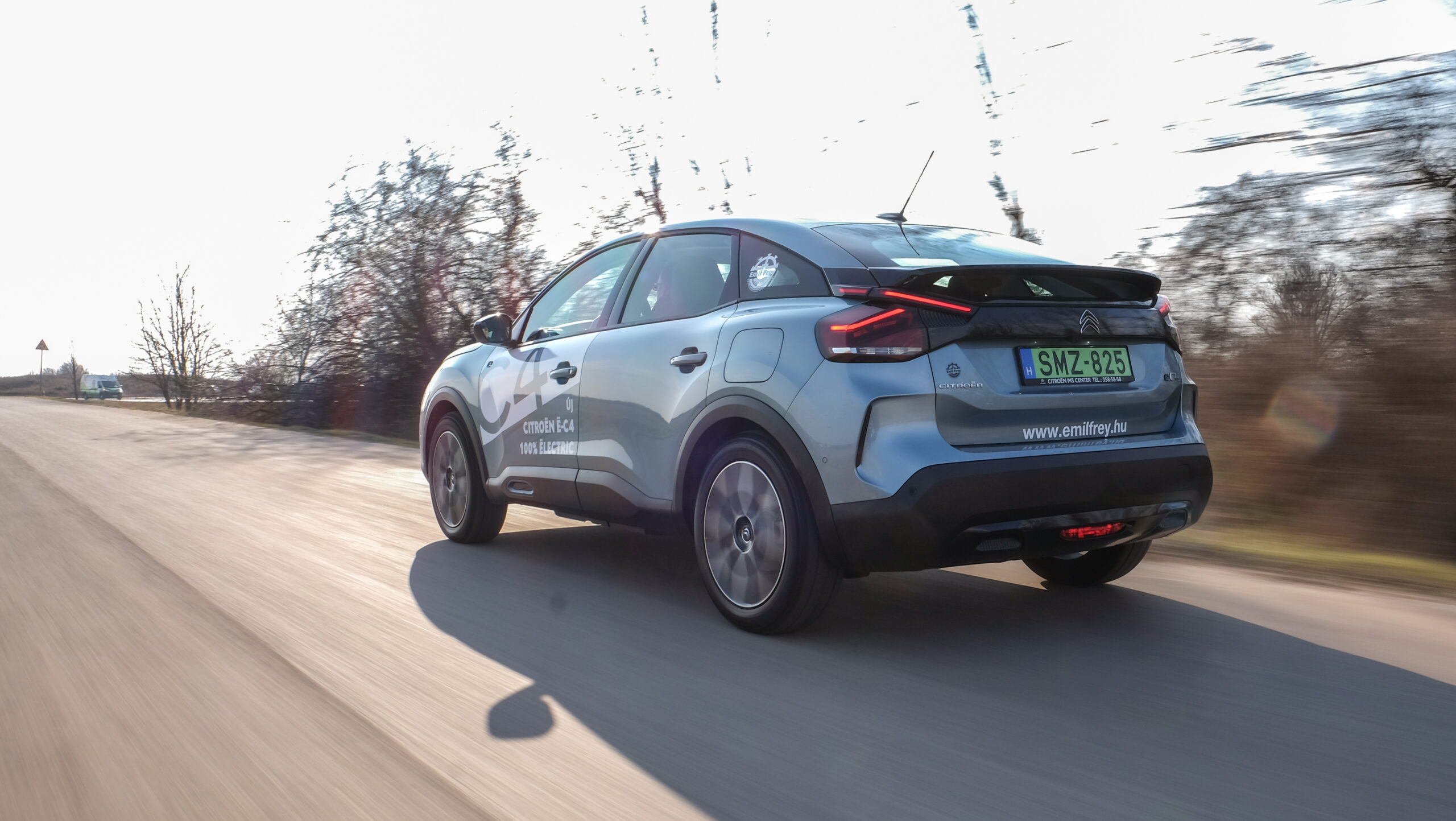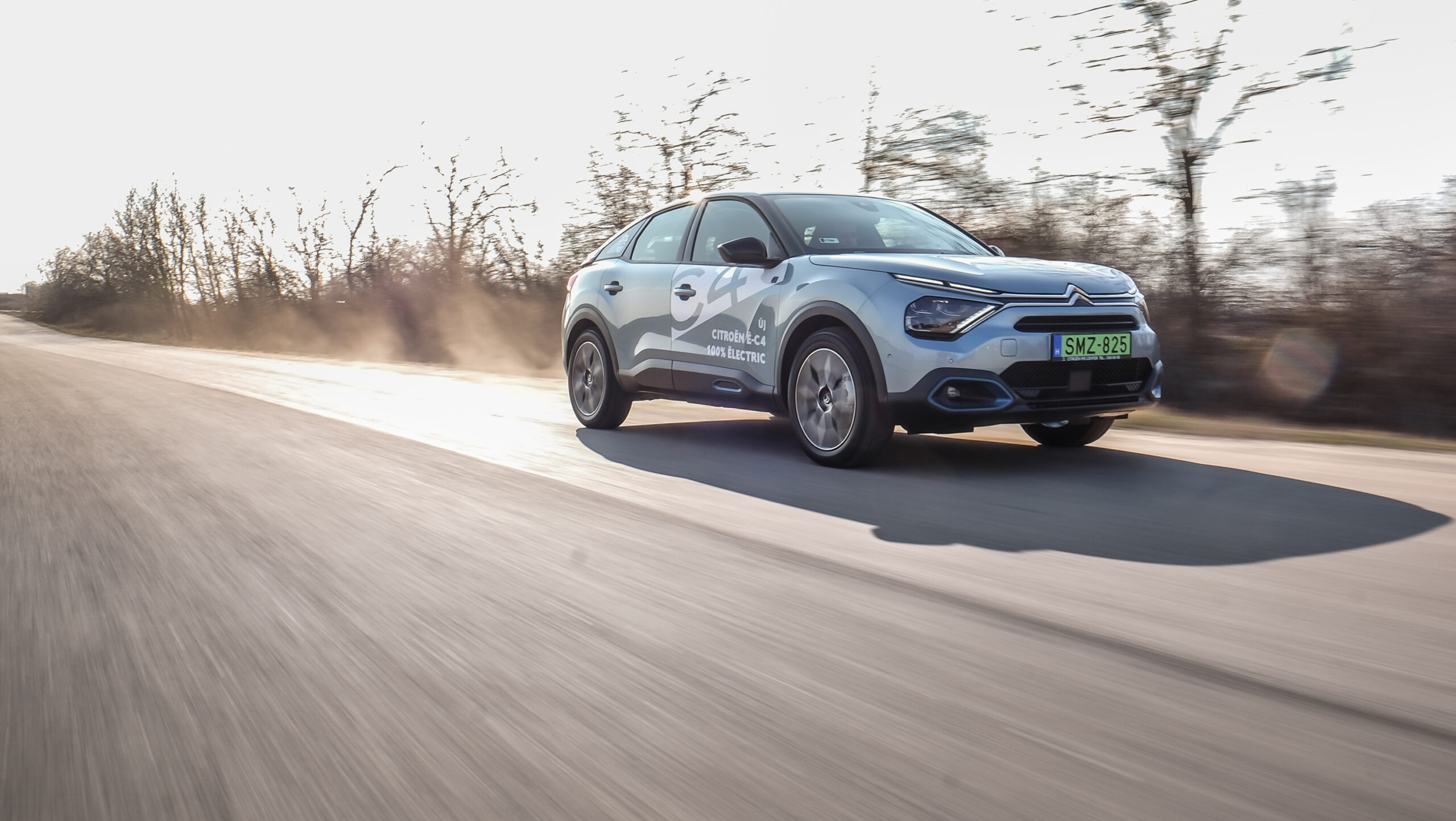 Ellenben a külsővel, a C4 utastere meglehetősen letisztult. Elegáns formák, csinosan beépített digitális műszeregység és 10 colos multimédia, egyszerű középkonzol, egy billenőkapcsolóval és apró gombokkal irányítható automata váltóval. Élettérnek nem rossz, sőt, az eleganciába nagy mennyiségű praktikum is szorult. A kesztyűtartó fölött fiók, fölötte pedig tabletállvány várja az utast, a középkonzol pedig kétszintes tárolót és könyöklő alatti rekeszt is kapott. USB-csatlakozók, vezeték nélküli telefontöltés, Android Auto és Apple CarPlay, online szolgáltatások, alapáras vezetéstámogató rendszerek jellemzik az új C4-et, aminek felszereltsége már alapáron is igencsak gazdag. Hamarosan érkezik a belépő szintű benzines és dízelmotoros kivitel is, de egyelőre úgy tűnik, hogy az új C4 elektromos hajtással az igazi. Igaz, azt meg is kell fizetni: legolcsóbban 10,799, a tesztautót jelentő Feel Plus ellátmánnyal 13,599 millió forintért hozható el, míg a benzines és automata váltós tesója már 7,799, Feel Plus ellátmánnyal 8,399 milliótól. Aki tudja otthon tölteni, kiélvezi a zöld rendszám előnyeit (cégautó- és gépjármű-adómentesség, ingyenes parkolás), és jellemzően nem megy többet napi 250-300 kilométernél, az már ma is mindenképp az elektromossal jár jobban.Vezetni az elektromosat a legjobb, feltűnően jó a harmónia benne a benzines mellett, az 1,2-es fogyasztása viszont még automata váltóval is korrekt, a C4-ben pedig az a legjobb, hogy érdekes