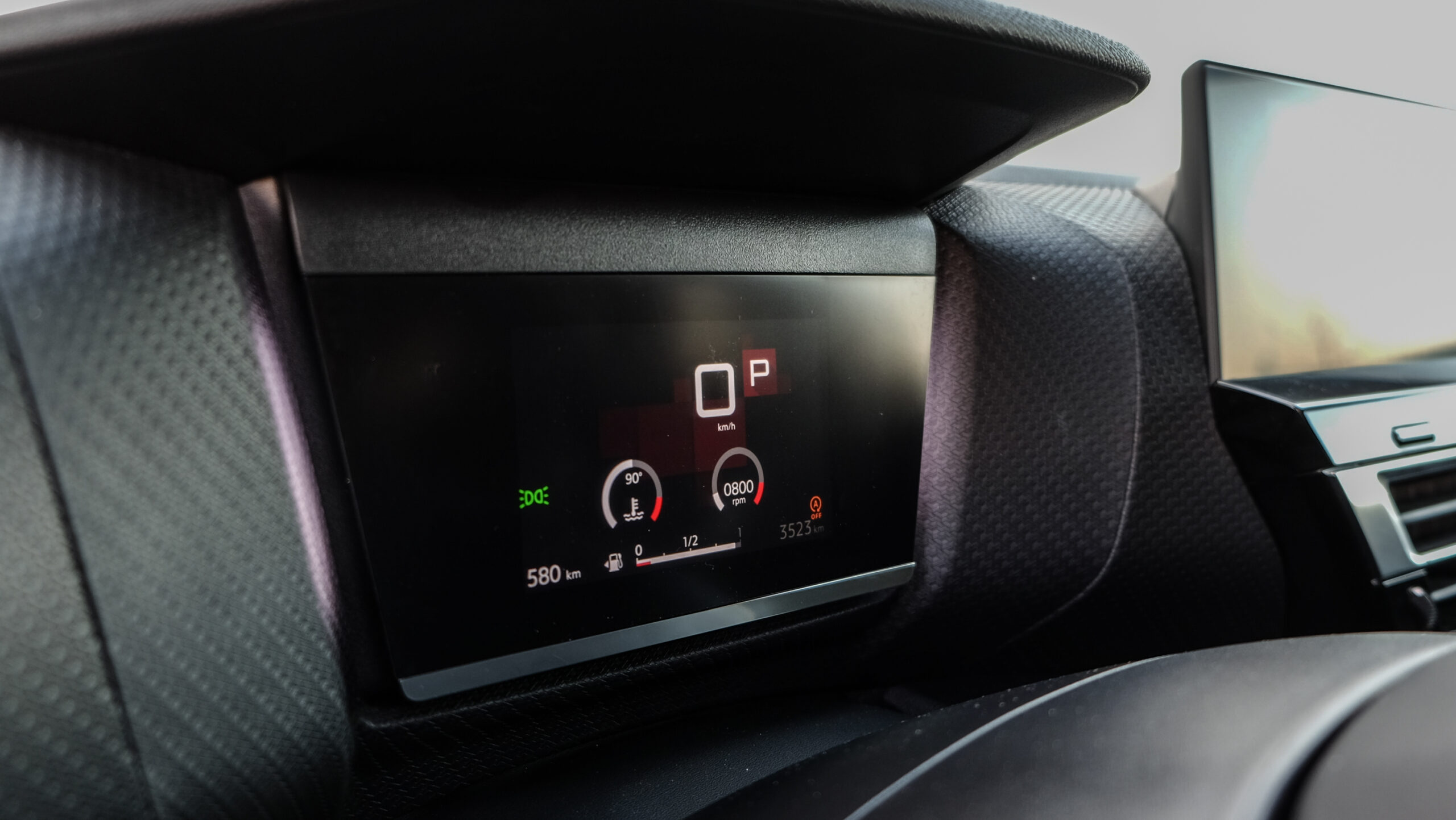 Megszokást és türelmet igénylő az automata váltó kapcsolója, a kijelzők képe szép, a menü a megszokott logikára épül, van Android Auto és Apple CarPlay lehetőség is