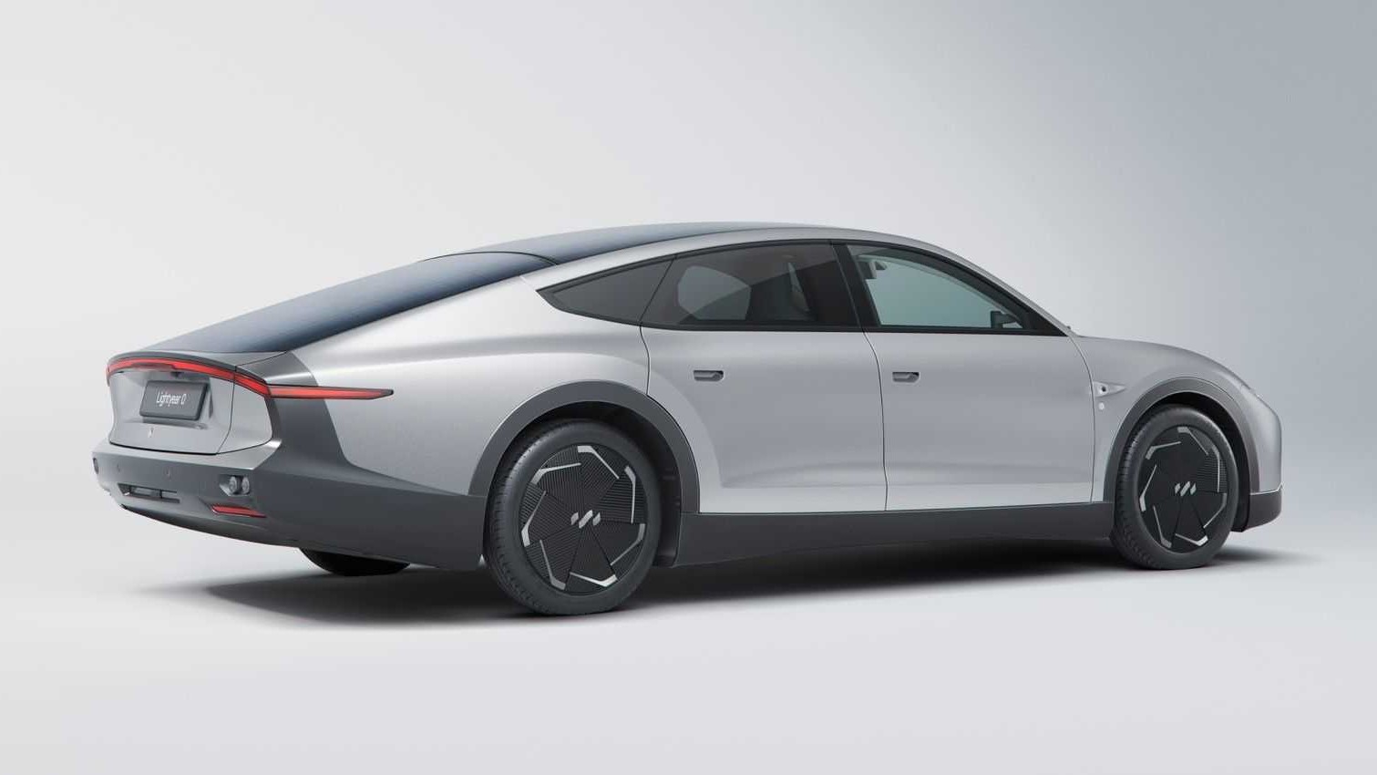 Hátulról jól látszanak a napelemek és az aerodinamikára optimalizált karosszériavonások is