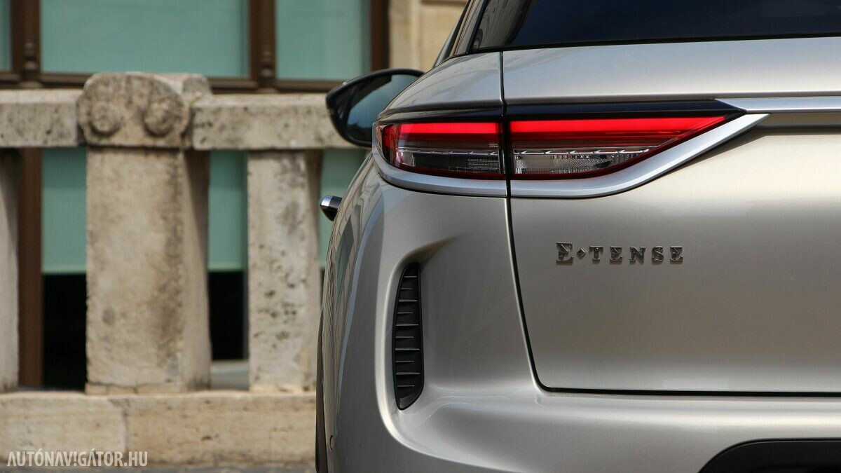 Az E-TENSE embléma és a kipufogók hiánya árulkodik a villanyautóságról. A zöld rendszámon kívül