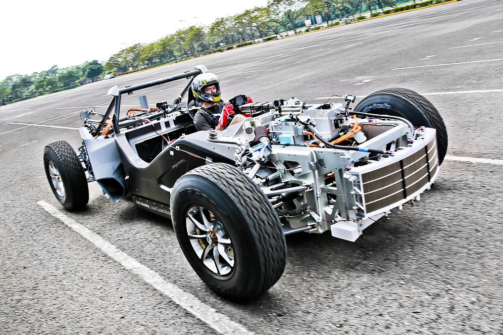 A projekt mostanra jutott el abba a fázisba, ahol már menetképes prototípust tudnak felmutatni a fejlesztők. Az 1341 lóerős Miss R névre keresztelt masináról már korábban is érkeztek infómorzsák, ám végre mozgás közben is megcsodálhatjuk. A ralikrossz versenyeken látható vasszöcskékre emlékeztető autó hajtásáról négy villanymotor gondoskodik, tehát kerekenként egy. Az akkumulátora 1 megawatt energiát képes adni és további különlegessége, hogy a számítógépek hűtésére használt folyadékkal temperálják, márpedig ezt a módszert még nem alkalmaztak villanyautóban. A „szöcske” adatairól még nem sokat árultak el. Csupán annyit tudni róla, hogy a százas sprinthez 1,8 másodpercre van szüksége, a végsebessége pedig 270 km/h. Ahogy a videóban látszik, terepen is magabiztosan mozog. Nézzétek meg!