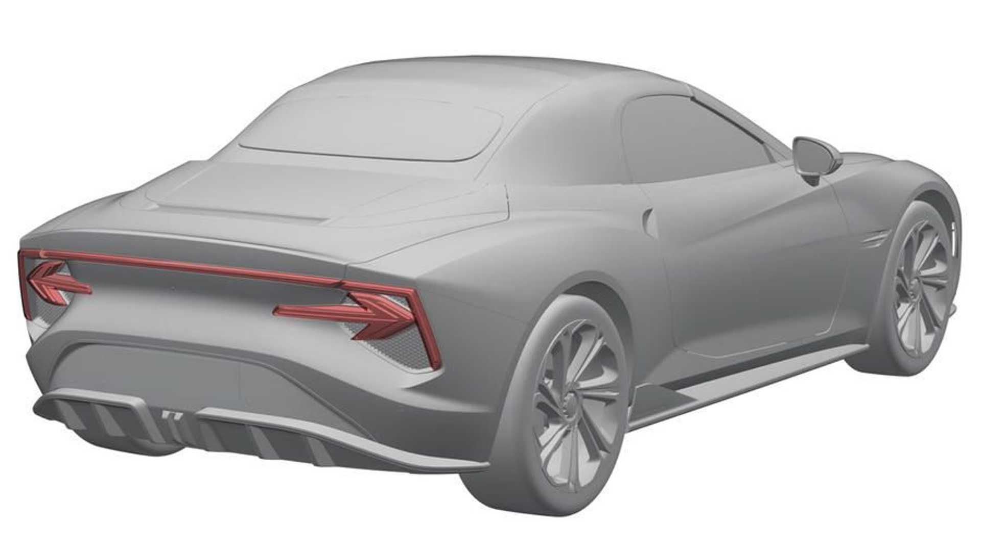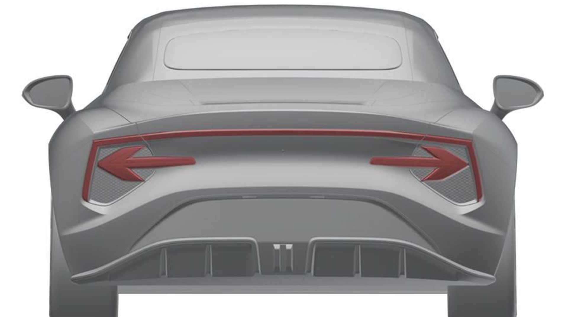Sőt, a videó mellett a szabadalmi hivatal képei még többet árulnak el. Ahogyan a videó is, amiből kiderül, hogy elektromos mozgatású vászontetőt kap az autó, illetve szárnyas ajtókat. Szintén jól látszik a videóban, hogy a hátsó lámpákat a brit zászló ihlette, és ezek egyben irányokat jelölő nyilakká változtak. Ami viszont se a képekről, se a videóból nem derül ki, az az autó hajtáslánca.