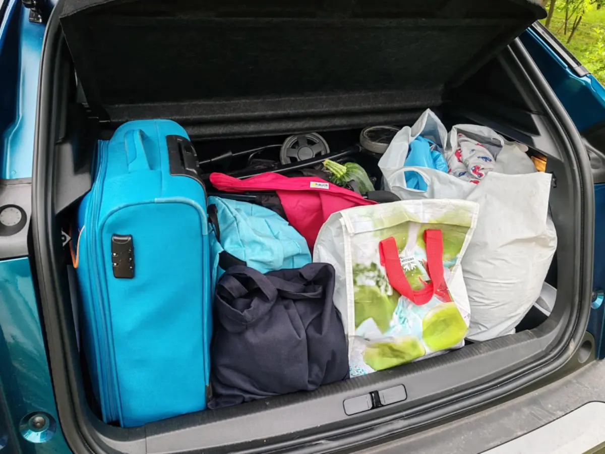 Egy közepes bőrönd, egy hátitáska, egy nagyméretű és egy kisméretű bevásárlótáska, egy hűtőtáska, két cukkini és egy sportbabakocsi: ezeken túl már legfeljebb kabátokat és pulóvereket tudsz a lyukakba préselni, ha le szeretnéd csukni a kalaptartót