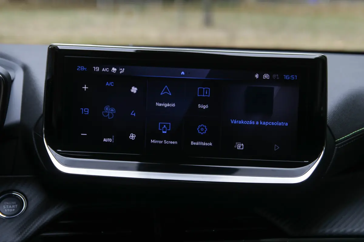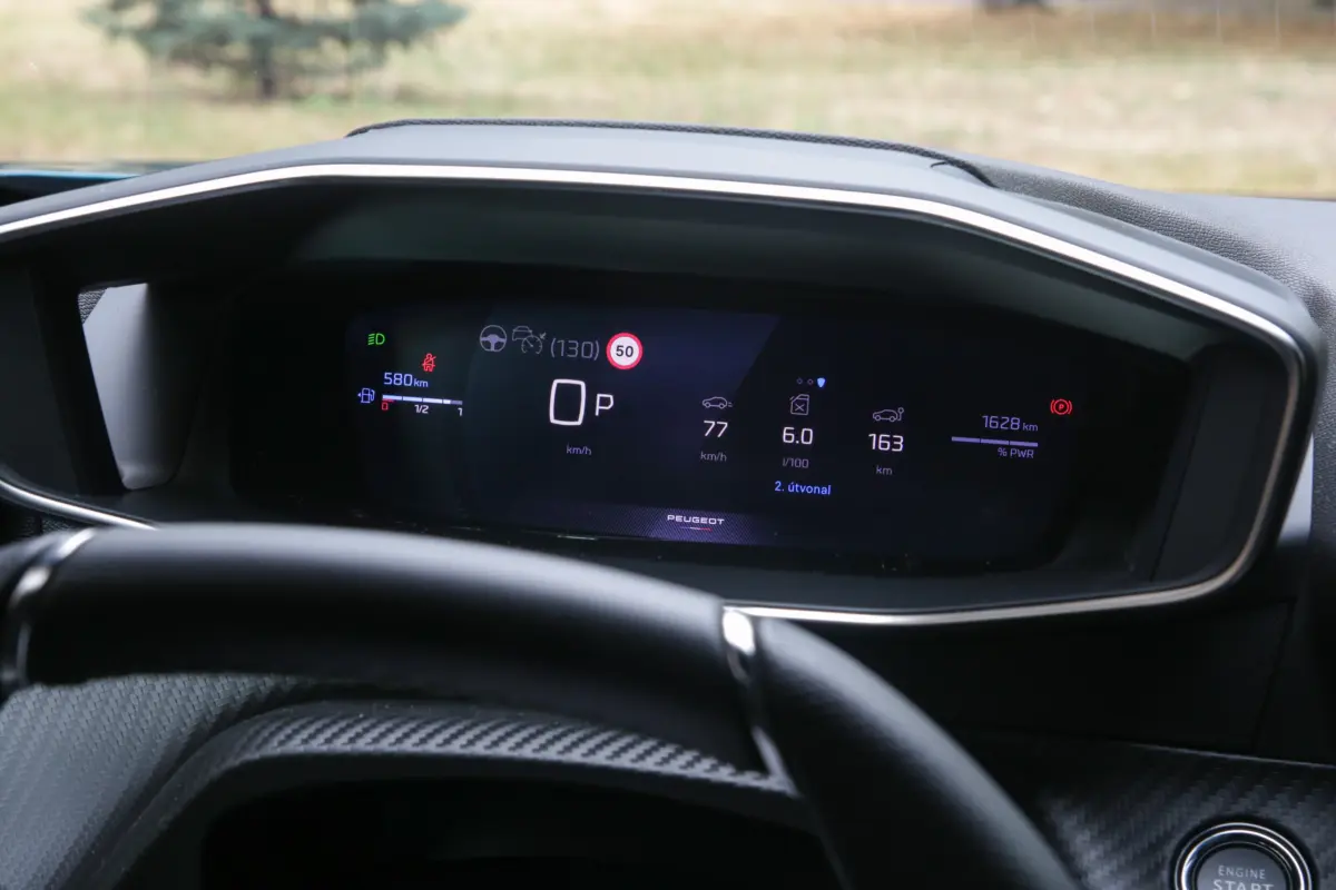 Az előző generációs i-Cockpit műszerfal szinte teljes mértékben azonos a 208-ban találhatóval, szerencsére még nem kapta meg sem az egybefüggő képernyőt, sem pedig a tapipados kormányt. Az utastér a szokásos Peugeot élményt hozza. Pozitívum tehát, hogy az ergonómia, az anyagminőség, illetve a kényelmi színvonal magasabb az átlagnál, egyértelmű negatívum a szoftver, ami még mindig lassú és makacs, az alapvető elrendezés és üléspozíció pedig továbbra is egyéni preferencia kérdése. Én például szeretem az aprócska kormányt és a felette elhelyezett műszeregységet, de teljesen rendben van az is, ha valaki inkább a hagyományos megoldást választaná. Fontos viszont megjegyezni, hogy sajnos ebben a szegmensben még mindig ritka a jó szoftver, így talán itt a leginkább versenyképes ez a felállás.