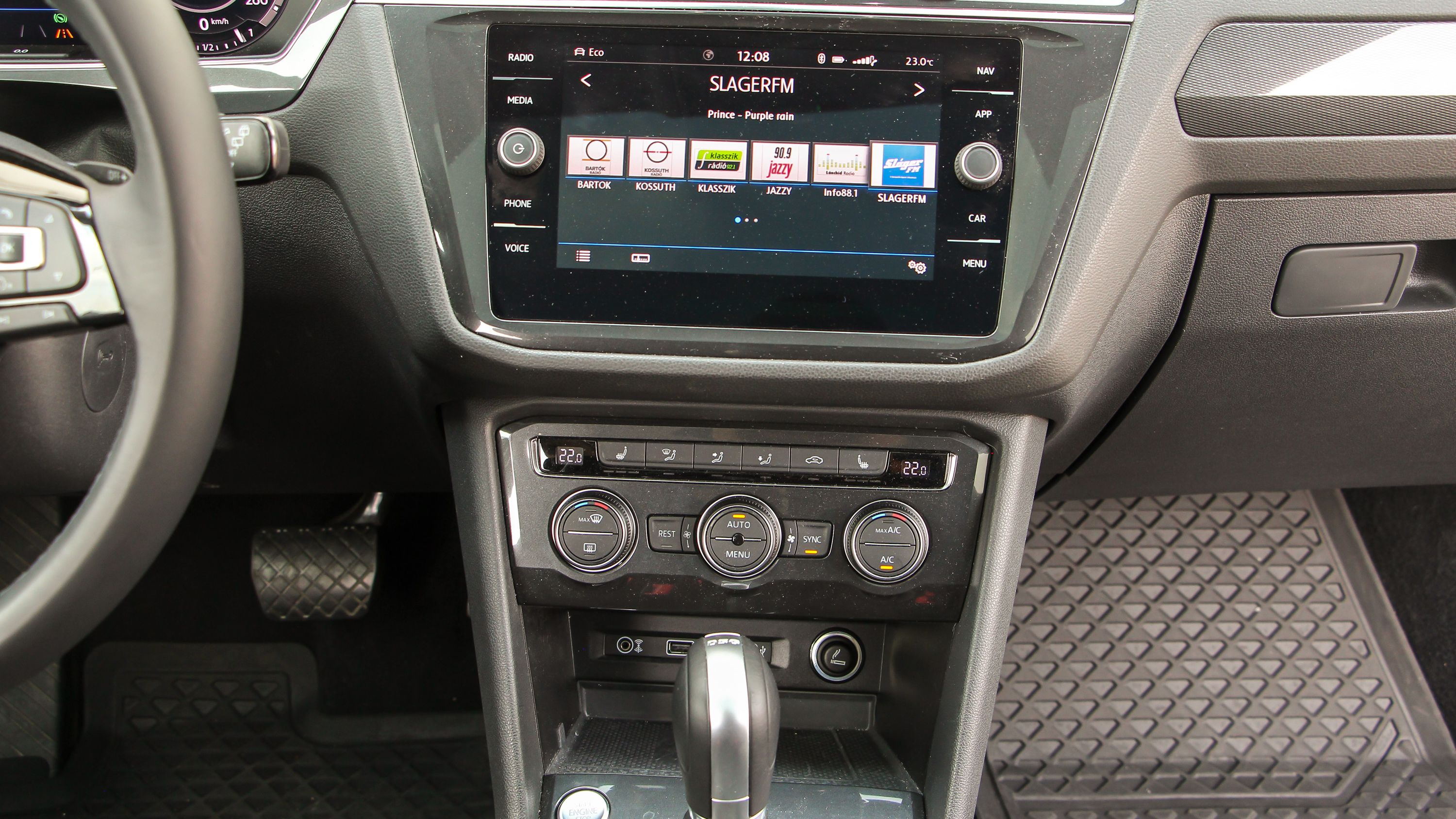 Hatalmasak az első ajtózsebek, ahogyan maga a belső szélesség is jelentős, 1,5 méter feletti. A műszerfal pont olyan, mint a Tiguanban - igényes, akár teljes egészében digitális műszerblokkos, puha műanyagos