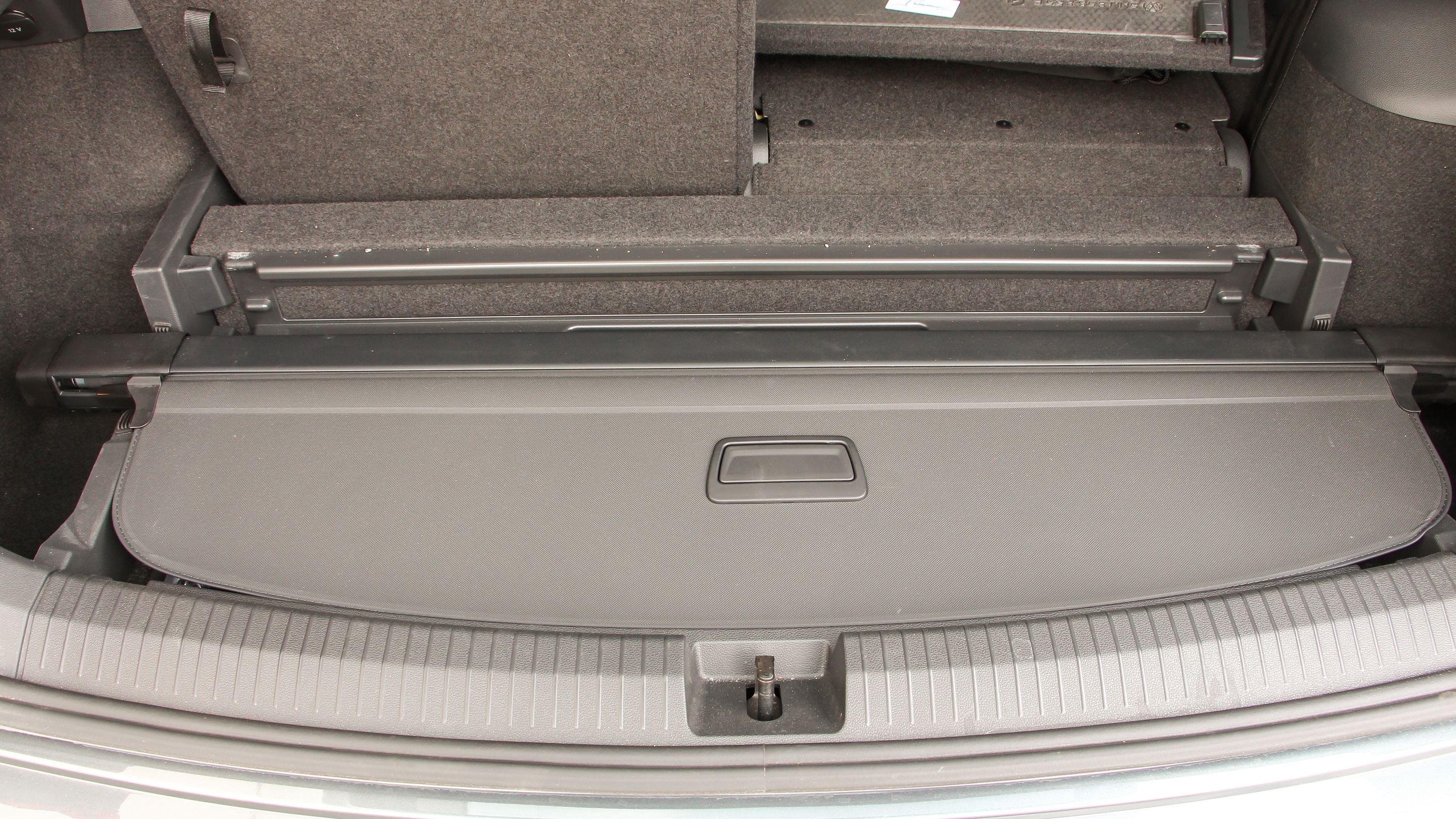 Távirányítással hajthatjuk le a középső sor üléseit, a leghátsók öveit pedig befűzhetjük egy kis műanyaglap mögé, hogy ne legyen útban a fedőroló behúzásakor. A francia egyterűk után itt is kivehető a csomagtér lámpája