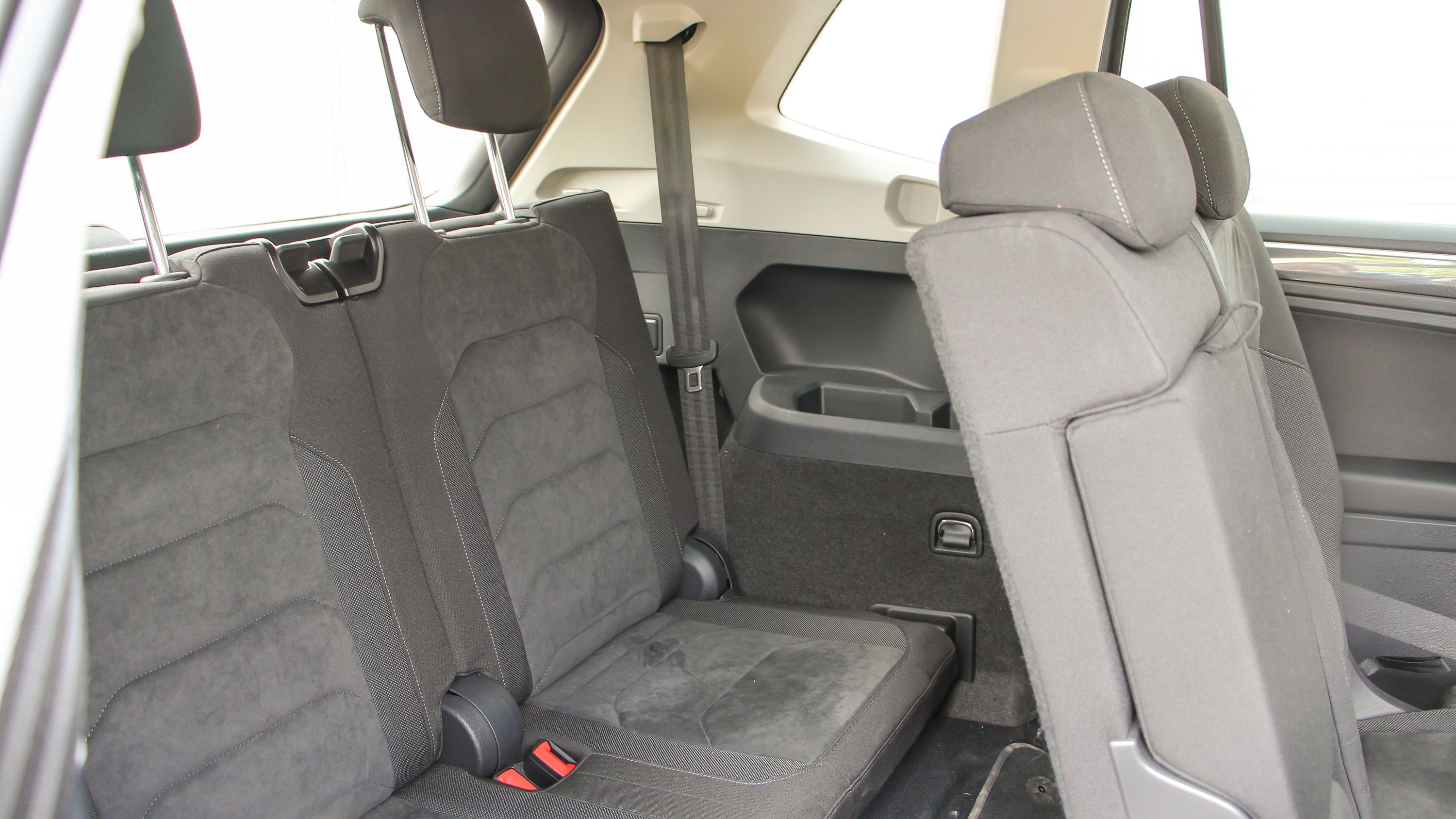 Felénk a Tiguan Allspace a VW egyetlen hétüléses SUV-ja, hiszen hiába van egyterűből Touran és Sharan is hét üléssel, hiába van ott az etalon Multivan, ha nekünk SUV kell, a Tiguan Allspace nem csak az egyetlen, hanem az első hétüléses VW SUV is Európában. Ennek megfelelően nem is siették el a munkát. Egyrészt viszonylag későn érkezett, másrészt a második generációs Tiguant elég alaposan át is gyúrták. A nyújtás már említetten a tengelytávot is érintette. A B-oszlopig ennek ellenére nincs változás, onnan viszont szemmel látható. Nyúltak a hátsó ajtók, nagyobb lett a második üléssor (maximális) lábtere is, szám szerint 5,4 centivel. Ha viszont hét üléses konfigurációt szeretnénk, aminek előállítását segíti, hogy a csomagtér fedőrolója padlórekeszbe rakható, akkor az emészthető leghátsó lábtér érdekében a középső sorét is az éppen elegendőre kell redukálni.