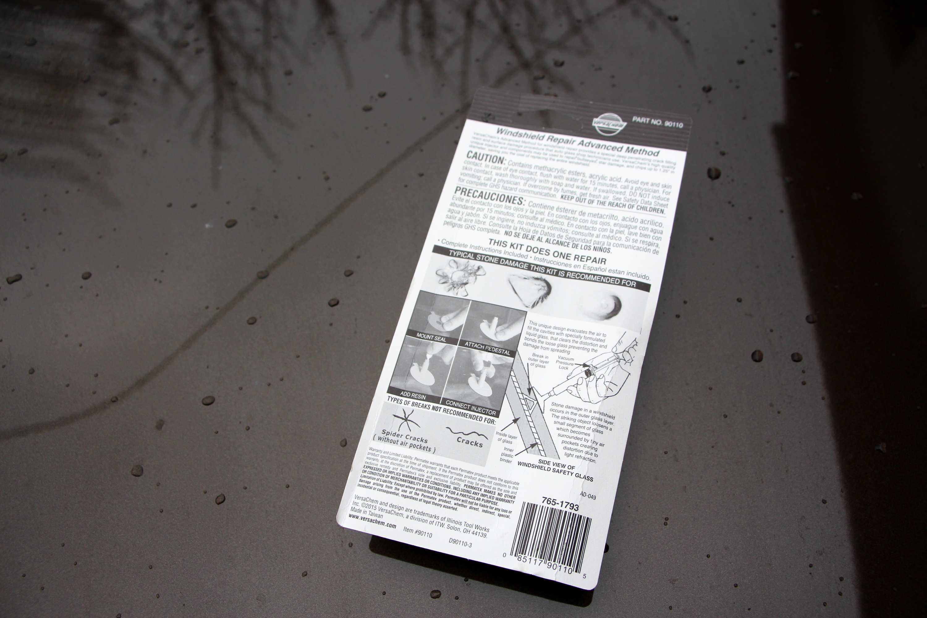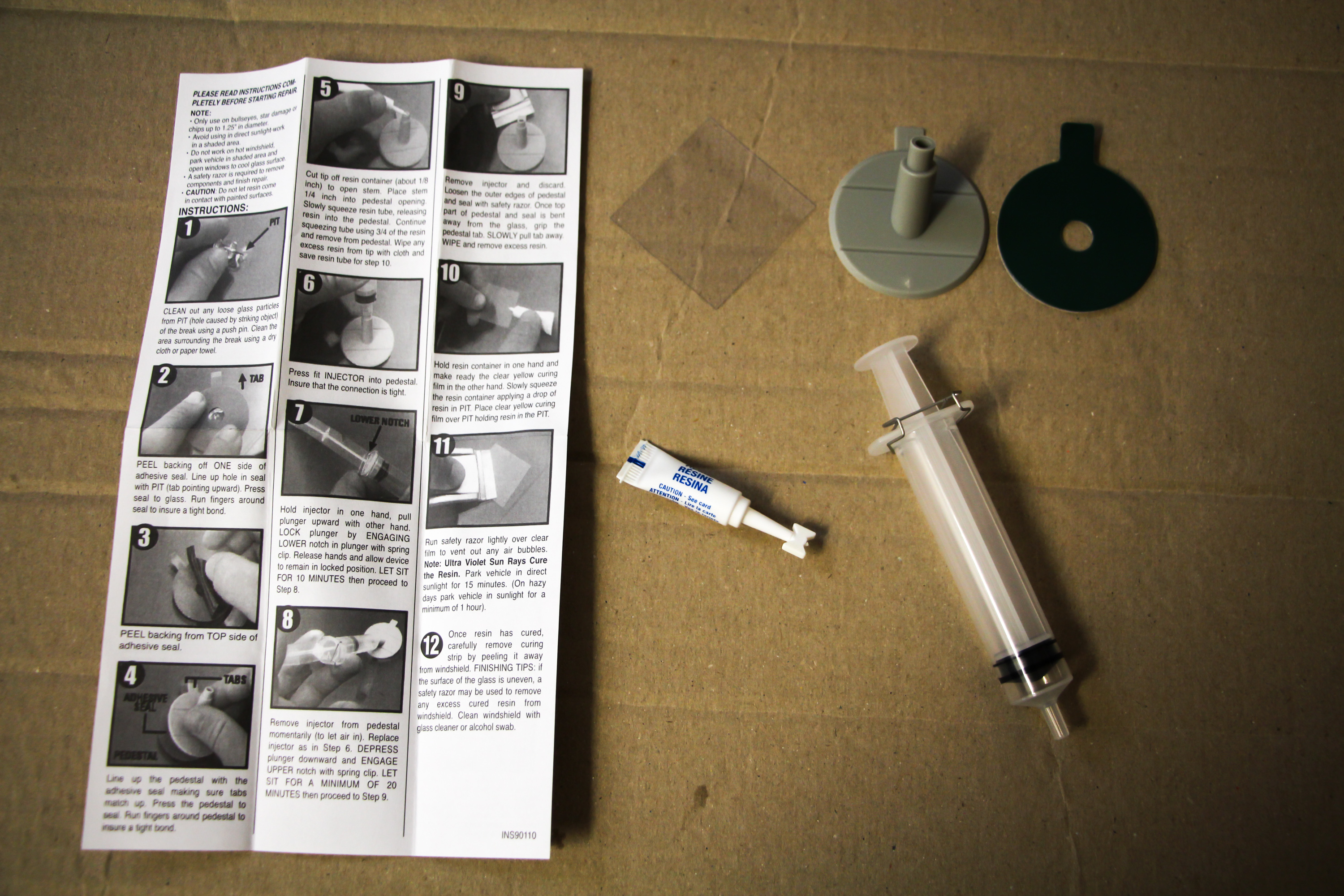 A csomag tartalma továbbá egy egészen kis tubus Resin (gyanta) nevű ragasztó. A szélvédők összetétele nem túl bonyolult, ma már az összes autóban szabály szerint biztonsági szélvédőt alkalmaznak a gyártók. Ez minimum kétrétegnyi üveget jelent, amiket speciális ragasztóval illesztenek össze. Ezért nem zuhan be az egész az ölünkbe sérüléskor, hanem apró szilánkokra törik, de a helyén marad - vagy legalábbis nagyobb darabokban, de sérülést kevésbé okoz az utasokon. Ez a ragasztó UV fényre köt, tehát napon kell száradnia. Amíg viszont a folyamat tart, addig árnyékban kell tartanunk az autót.