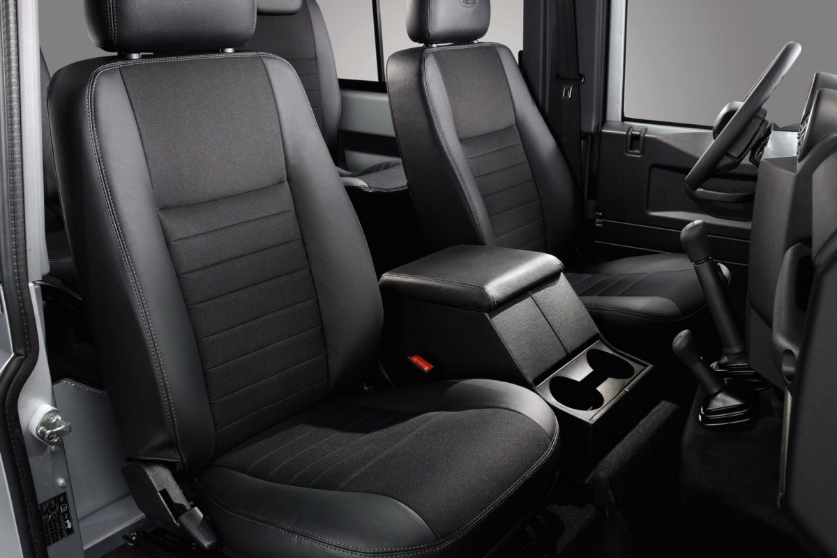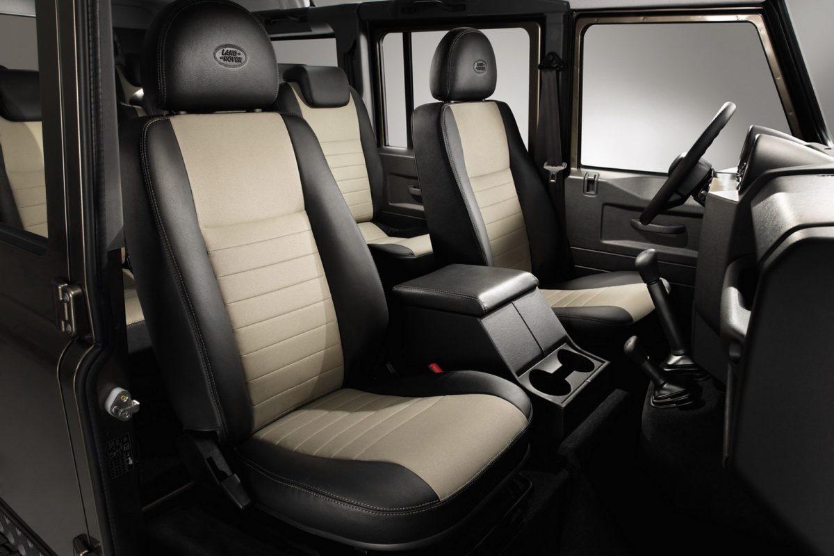 Utasterét sem hagyták érintetlenül, az ülések és a középkonzol színei a külső fényezést tükrözik, a fejtámlákba Land Rover logót hímeztek, a szőnyegekbe pedig a Defender nevet szőtték bele. Alapfelszereltségébe légkondi, ABS, kipörgésgátló, távirányítós központi zár, fűtött ülések és fűthető szélvédő tartoznak.