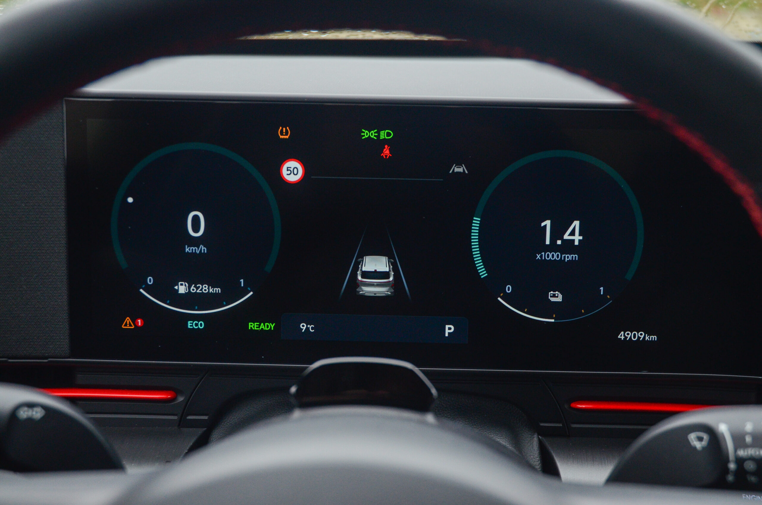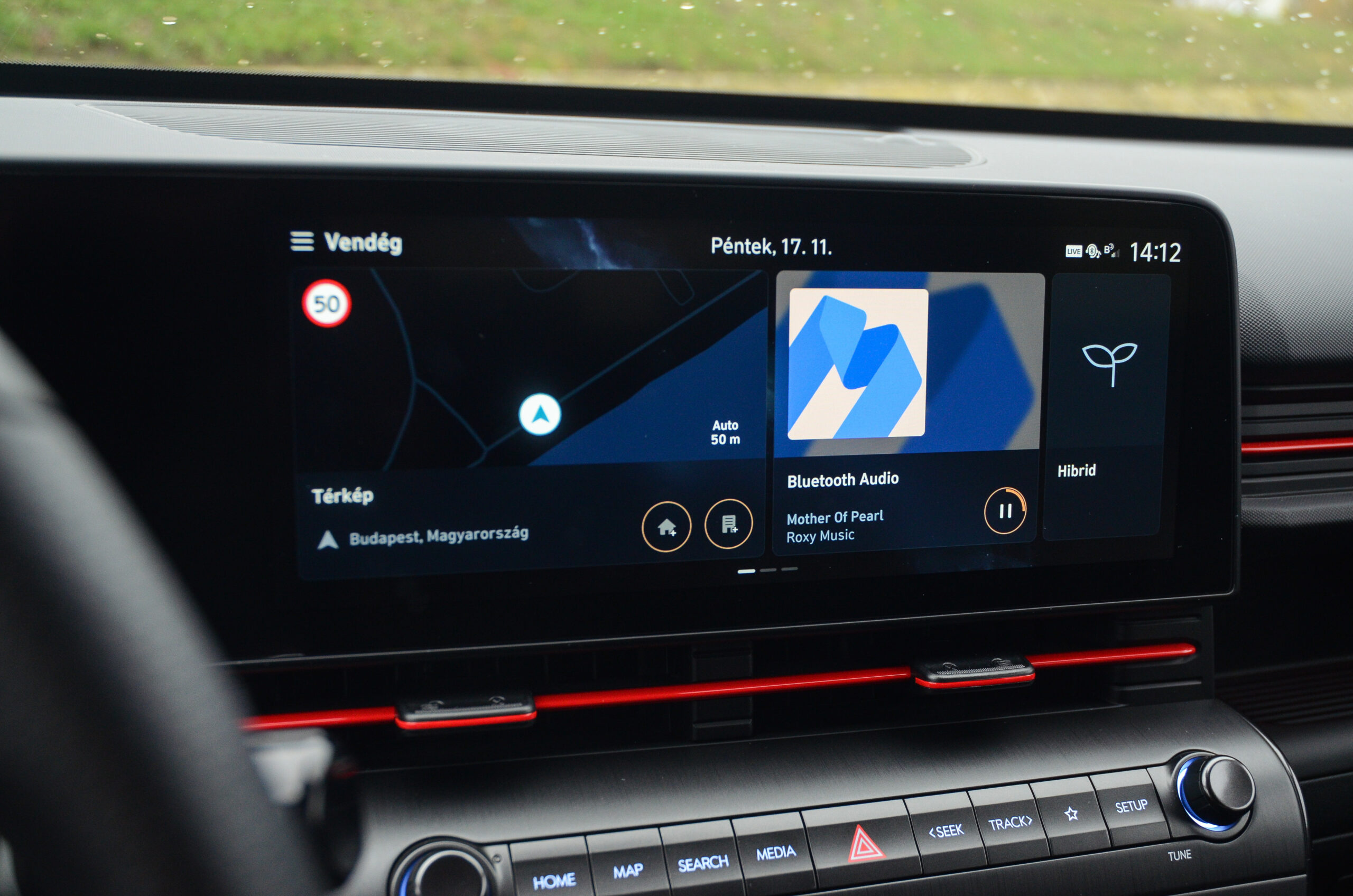 Vezetési élmény terén is a semlegesség és az észrevétlenség a legnagyobb előnye, ám ez egyáltalán nem negatívum. Azért észrevétlen, mert mindig pontosan azt csinálja, amit szeretnél, tökéletesen egyensúlyozik a pontosság és a kényelem határán. Minden kezelőszerv nagyon könnyű, a pedálok és a kormány is pillekönnyű, ám azért némi visszajelzést így is tudnak adni az útról, főleg a középső tekerővel kiválasztható, sportosabb üzemmódban. Persze ettől még versenyzős élményre nem kell számítani, hiába az N-Line csomag és a sportmód, ám ez szerencsére a fogyasztásán is látszik. kényelmesen 4 liter alá tud ugyanis menni a Kona országúton, 5,5 és 6 liter között mozog városban, 130 km/órával autópályán haladva pedig alulról súrolta a 7,5 litert. Fontos viszont megemlíteni, hogy mindösszesen 10 km/órával lassabban már bőven 3000 alá esik a fordulatszám a leghosszabb fokozatban, így ez közel másfél litert jelenthet a fogyasztási érték terén.