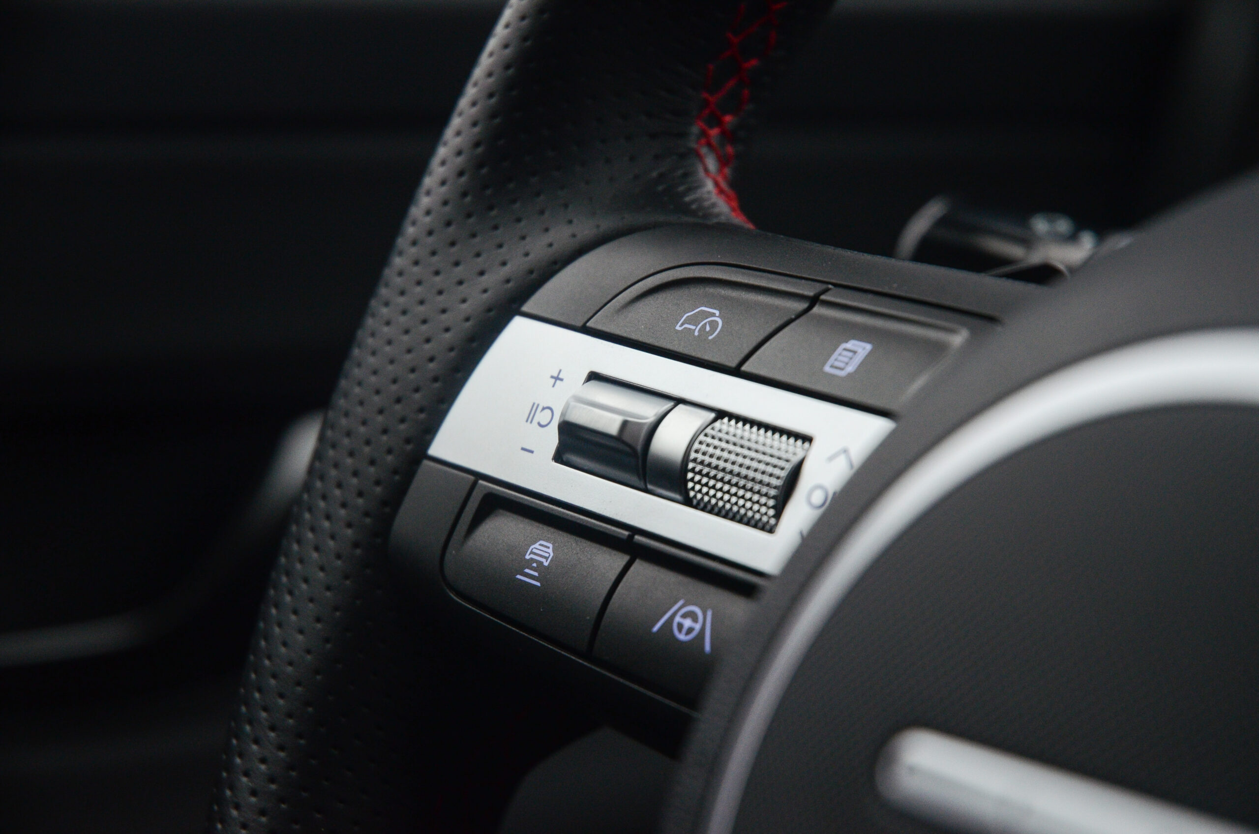 És ha már szóba került, hogy milyen belül: letisztult, ésszerű műszerfalat kapunk. Minden funkció könnyen megjegyezhető helyen van, jól kitapinthatók a fizikai gombok, hogy út közben se kelljen lenézni a különböző kényelmi extrák állítgatásához, ám a képernyők rajongóinak sem kell lemondaniuk a modernitásról, a két kijelző korrekt méretű, a rendszer gyors és egyértelmű, a teszthét során semmilyen idegesítő hibával sem találkoztunk. Felszereltség terén is bőséges a csomag: fűthető a kormány és az ötből négy ülőhely, kétzónás az automata klíma, korrektül szól a gyári hangrendszer, hibátlanul működik a kulcs nélküli nyitás, zárás és indítás, és még sorolhatnánk.
