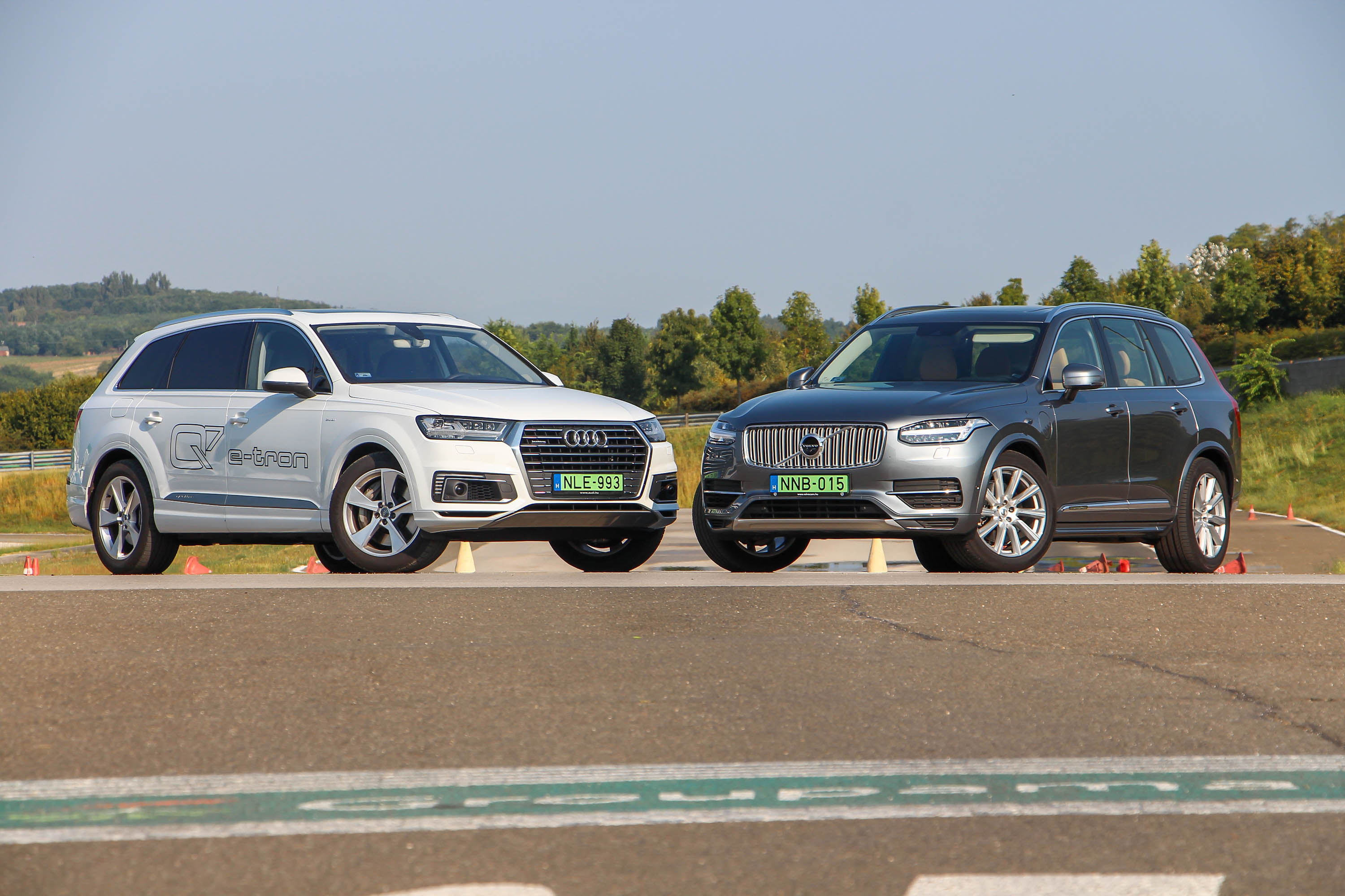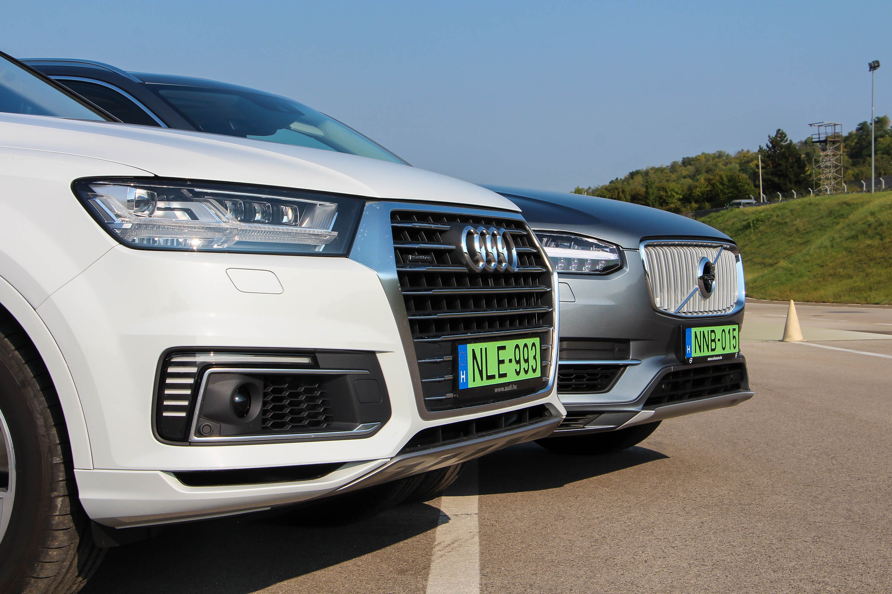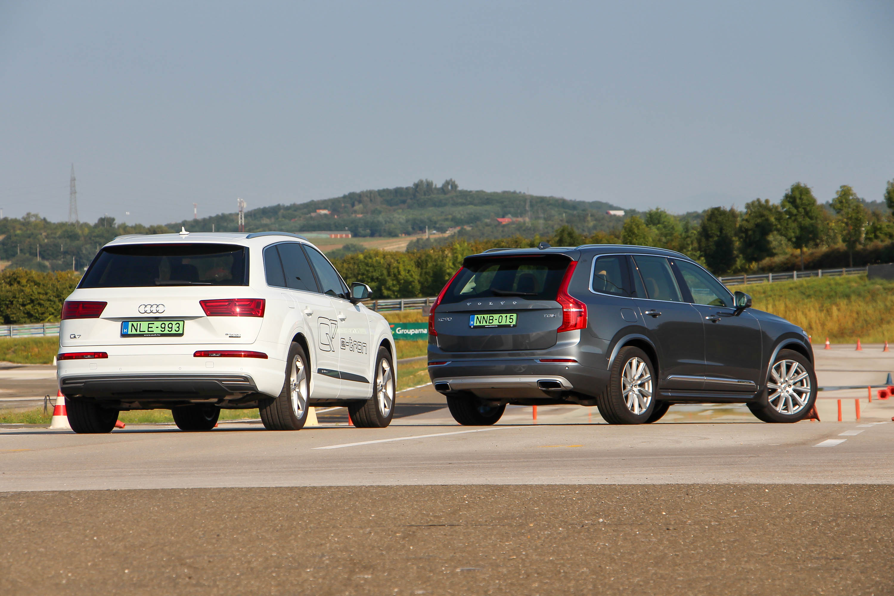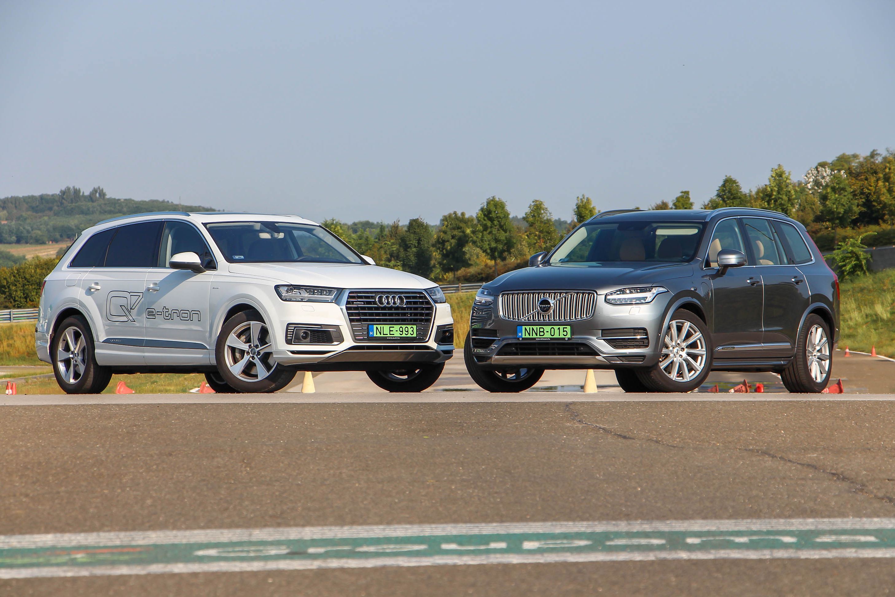Viszont a Q7 mindenképp sokkalta jobb hatótávot tud (könnyedén 1000 kilométer felettit, míg a Volvónál az 500 km is csoda), ha tehát nem kell a hatodik, hetedik ülés, a legtöbb szempont szerint sokkalta jobb autót kapunk a négykarikásoktól. A szimpátia, valamint az egyedi ajánlat kérdése persze mindenkinél másképp adódik. Aki ilyet venne, próbálja ki mindkettőt, kérjen ajánlatot, ne feledje, hogy ott a szintén zöld rendszámos BMW X5 is, de egyet kérünk, senki se gondolja, hogy ezek - az esetlen hazai törvényi szabályzáson túl - környezetkímélő autók. Továbbá bármelyiket is vegye, hajtsa ésszel és nagy óvatossággal, mert lehet ám velük jókorát esni, amit nem közúton, hanem ahogyan mi is tettük, tanpályán érdemes kipróbálni.Jobb, de extrázva érezhetően drágább az Audi. Utóbbi tovább mehet árammal, kényelmesebb, csendesebb, a Volvo viszont hétüléses is lehet