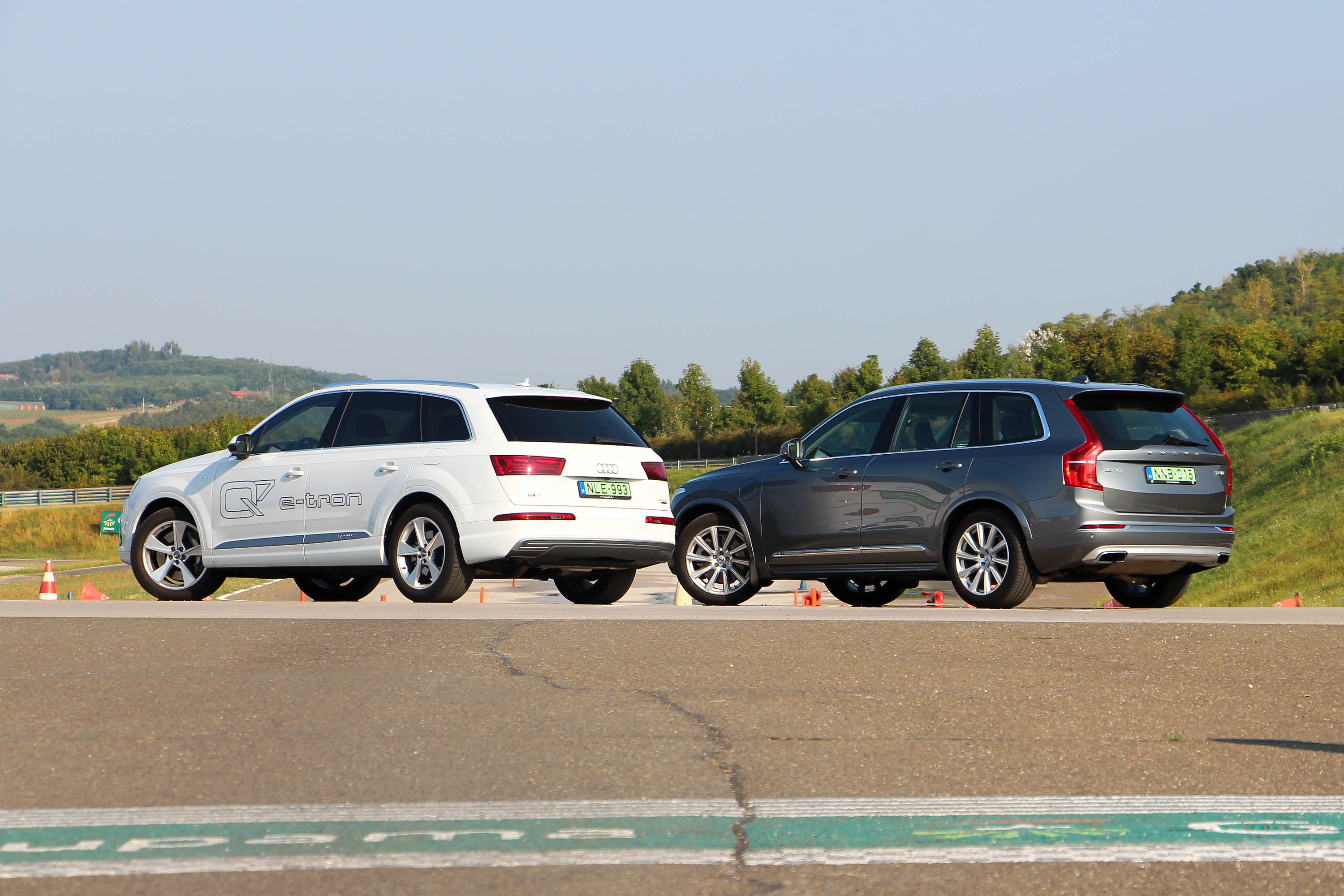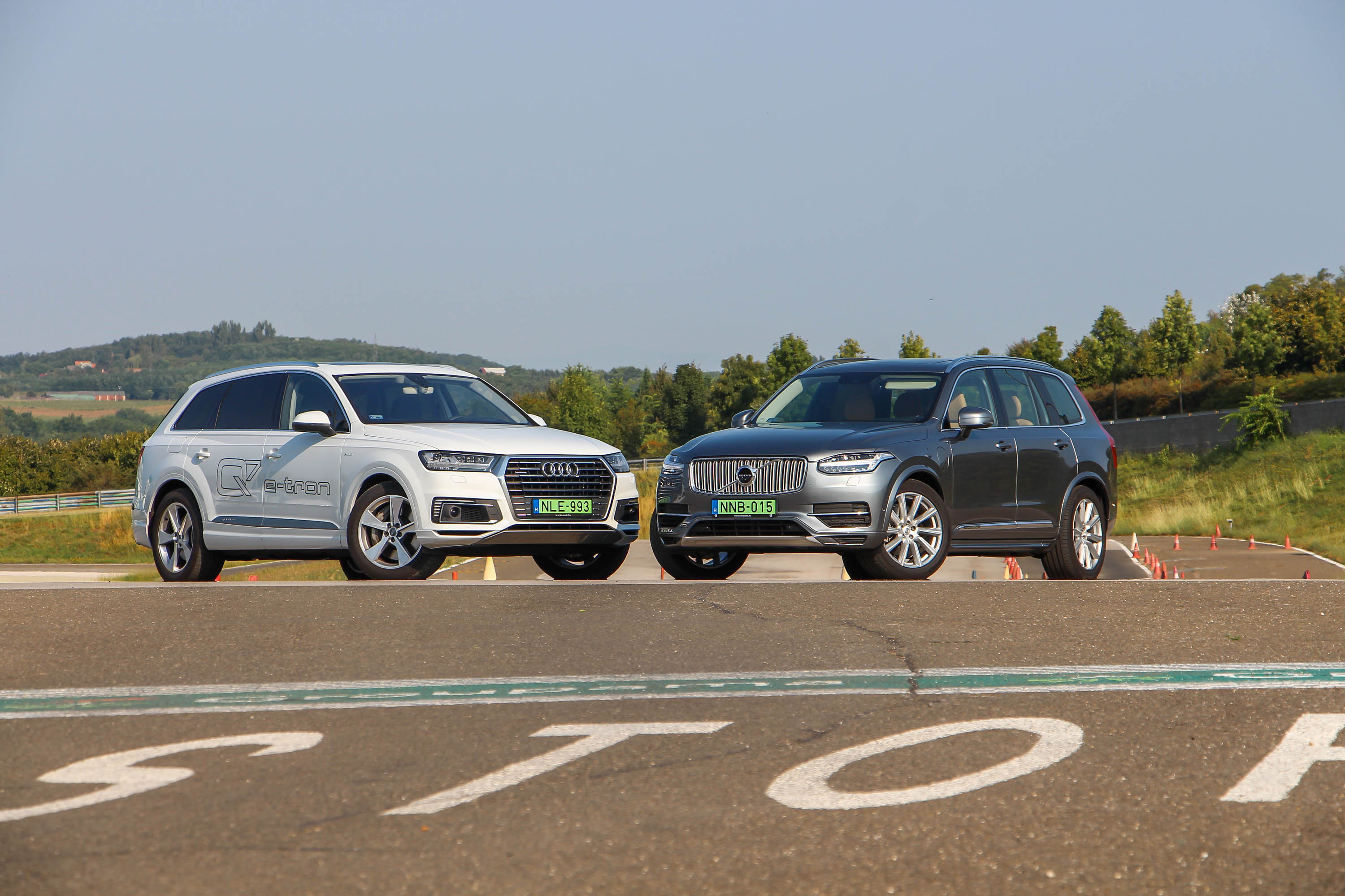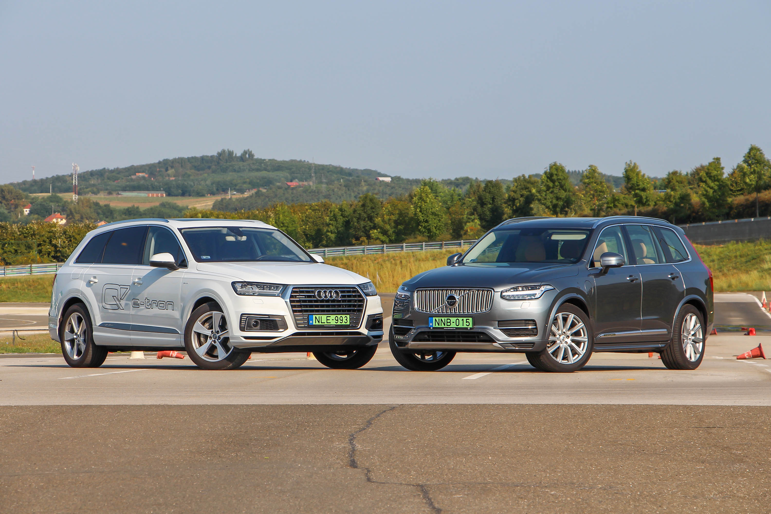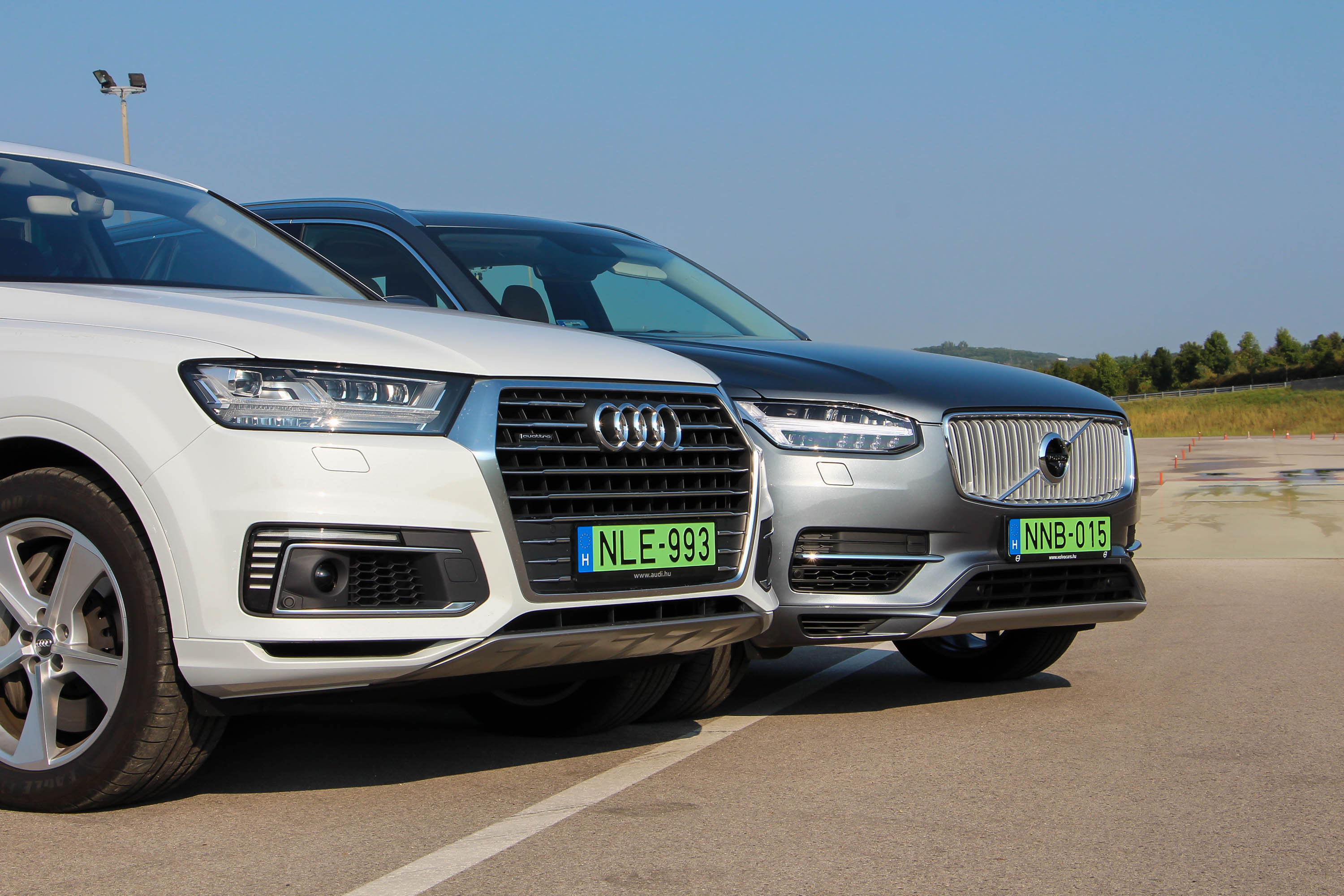Viszont a Q7 mindenképp sokkalta jobb hatótávot tud (könnyedén 1000 kilométer felettit, míg a Volvónál az 500 km is csoda), ha tehát nem kell a hatodik, hetedik ülés, a legtöbb szempont szerint sokkalta jobb autót kapunk a négykarikásoktól. A szimpátia, valamint az egyedi ajánlat kérdése persze mindenkinél másképp adódik. Aki ilyet venne, próbálja ki mindkettőt, kérjen ajánlatot, ne feledje, hogy ott a szintén zöld rendszámos BMW X5 is, de egyet kérünk, senki se gondolja, hogy ezek - az esetlen hazai törvényi szabályzáson túl - környezetkímélő autók. Továbbá bármelyiket is vegye, hajtsa ésszel és nagy óvatossággal, mert lehet ám velük jókorát esni, amit nem közúton, hanem ahogyan mi is tettük, tanpályán érdemes kipróbálni.Jobb, de extrázva érezhetően drágább az Audi. Utóbbi tovább mehet árammal, kényelmesebb, csendesebb, a Volvo viszont hétüléses is lehet