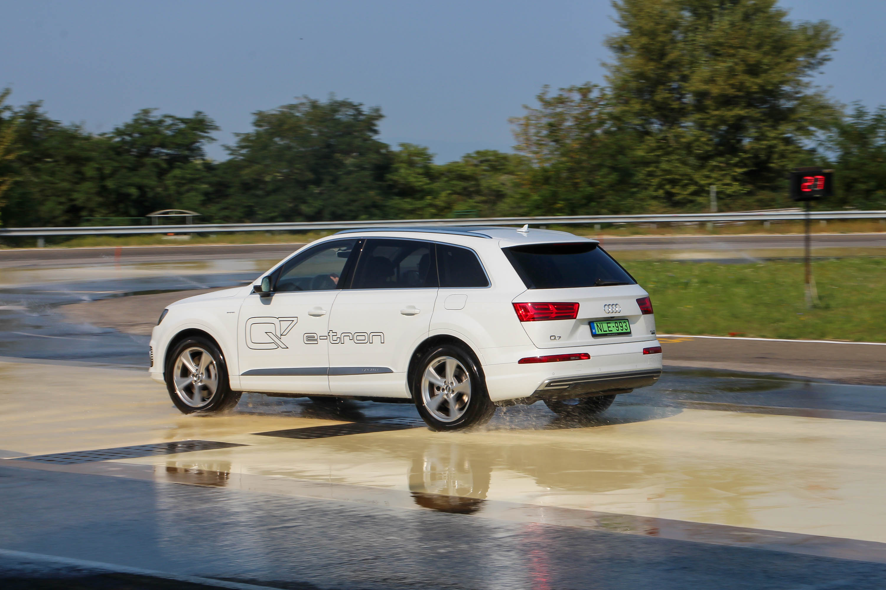 Mindkettőjükben van persze baleseti vészhelyzetre felkészítő rendszer. Az Audi már kisebb megcsúszásnál is finomabban megfeszíti az övet, láthatjuk a műszerfalon, hogy dolgozik az Audi pre safe, míg az eleve csak később megcsúszó Volvo valóban csak vészhelyzetben feszíti öveit, akkor viszont olyan erővel, hogy hetedik hónap után járó kismamáknál azonnal indulhat a szülés.Mindkét konnektoros SUV közel 2,5 tonna, biztonságérzetet sugároznak, de ha egyszer megcsúsznak, akkor nagyot lehet velük esni