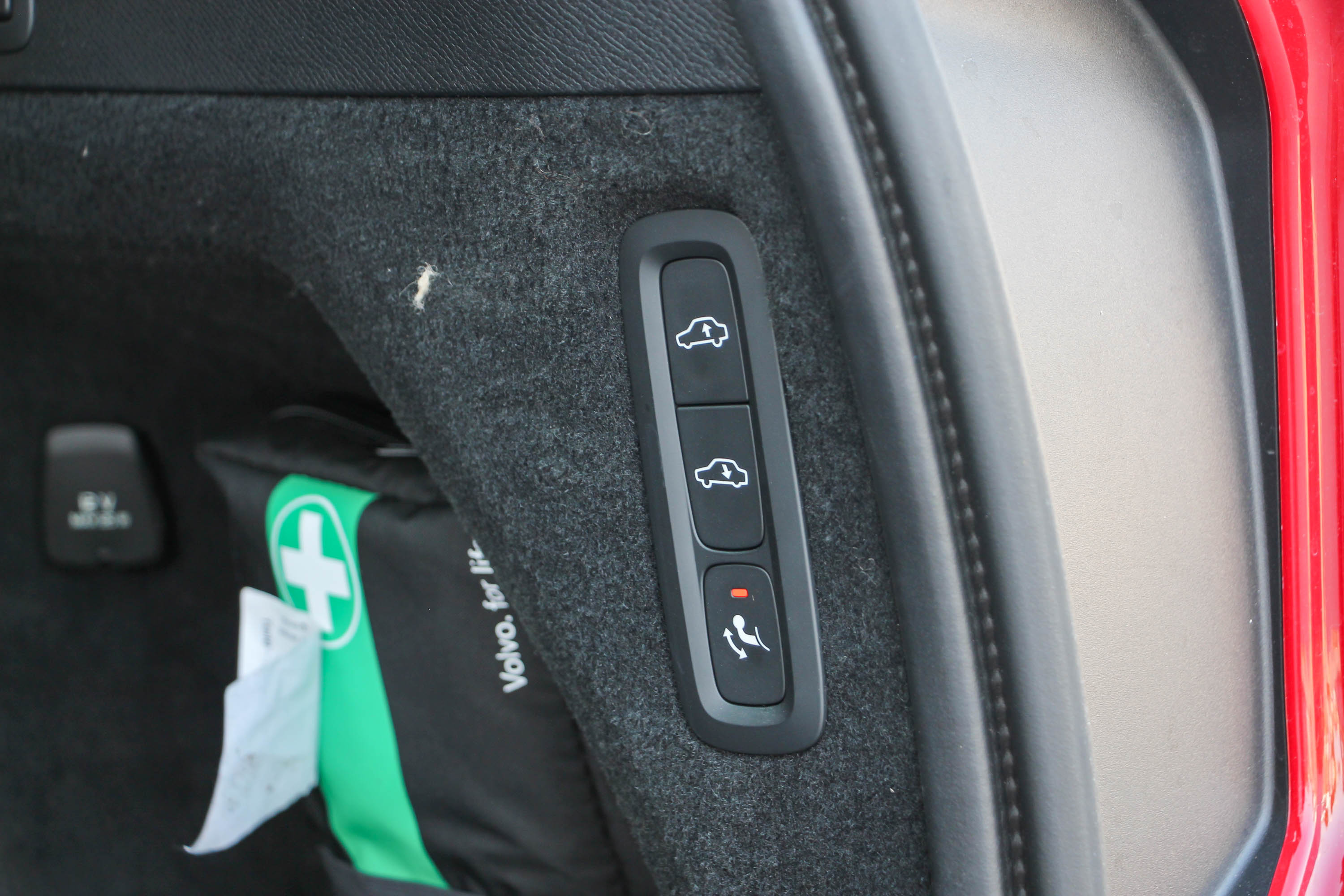 Zöld rendszám és dupla kipufogóvég a Volvón. A csomagtérajtók elektromosak
