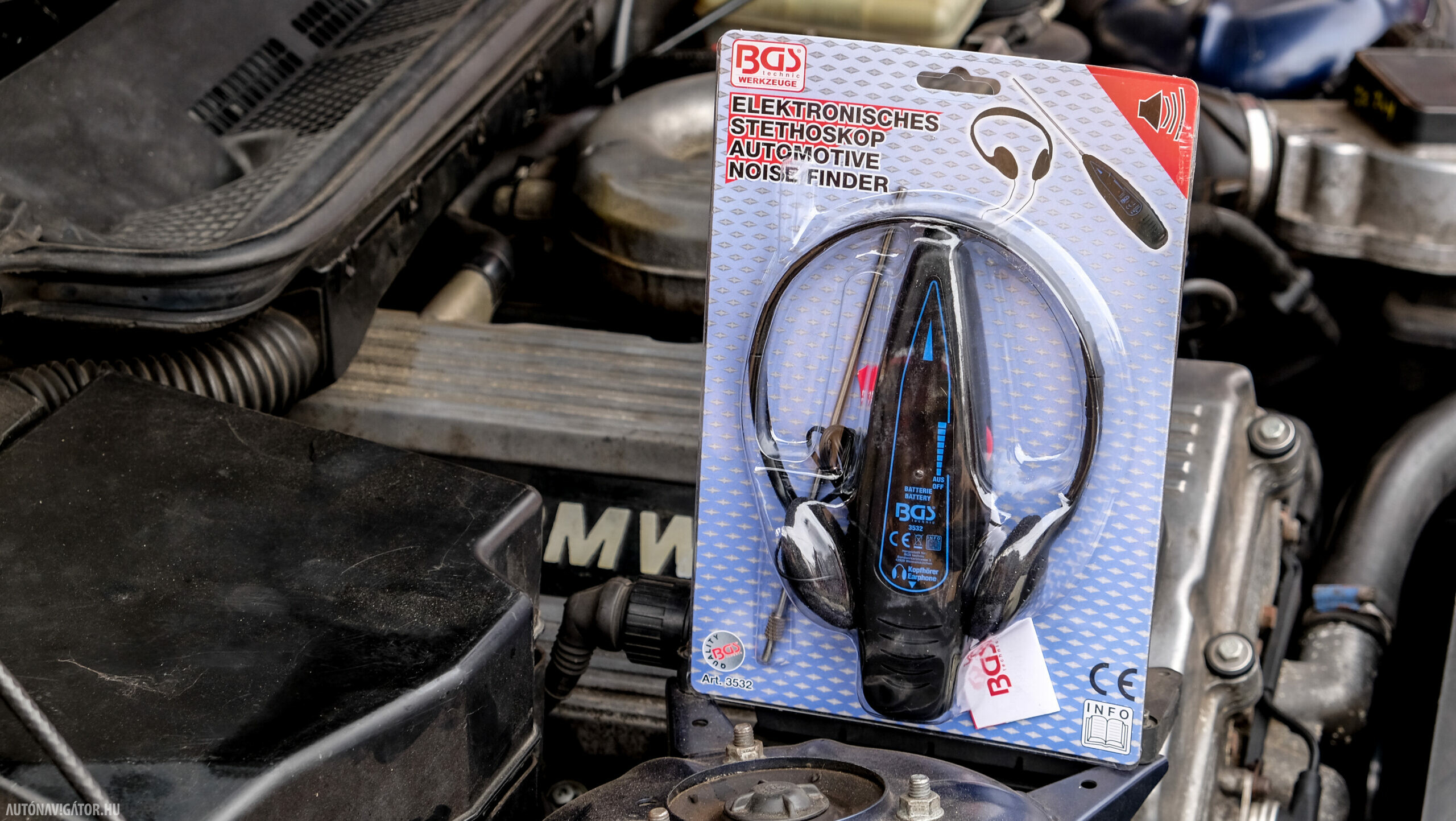 Kauffertől kapott autódiagnosztikai eszköz viszont elektronikus, egy 9 voltos elem működteti a hangszedő pedig egy fülhallgatón továbbítja a zajokat. A BGS Technic terméke tartalmazza a 9 voltos elemet, a fülhallgatót és a hangszedő pálcát is, amit a fekete test csúcsába kell becsavarnunk. Vagyis a csomagolásból kivéve azonnal használható is, egyedül az elemet kell a csomagolásából kibontanunk, majd csatlakoztatni a helyére.