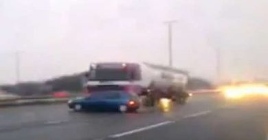 Egy kamionos több mint 100 kilométer/órás sebességgel tolt maga előtt egy autót. Nincs információ arról, hogy szándékosan vagy figyelmetlenségből tette-e.