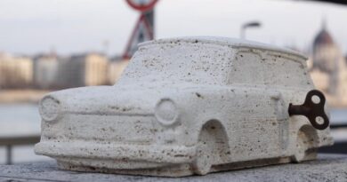 Tudom, alapesetben sem a szó szoros értelmében papírból, hanem Duroplastból készült a Trabant, ám ez a modell még ennél is különlegesebb: kőből készült miniszoborként örökítették meg a kis kétütemű csodát.