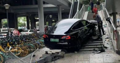Az elmúlt napok heves esőzései miatt leszakadt Kínában egy híd egyik vége. Egy SUV halad épp rajta, amelynek vezetője nem vette észre időben a megrongálódott átkelőt, így nagy sebességgel hajtott a gödörbe.