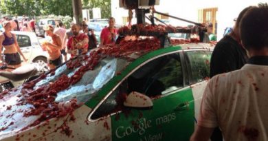 A Google kamerás autója a Tomatina nevű, világhírű spanyol paradicsomcsata közepébe hajtott. Mintegy 150 tonnányi lédús zöldség landolt a kamerás autón.