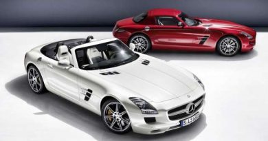 A Mercedes-Benz SLS AMG jellegzetessége a két szárnyas ajtó, ám a Roadster változatnál hiába keressük eme különleges részletet. Ahogy anno a 300 SL esetében, úgy a modern utód is megjelenik tető nélkül.