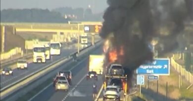 Az M86-os autóúton gyulladt ki, majd égett le egy autószállító kamion, szerencsére személyi sérülés nem történt, ám az anyagi kár jelentős. Mutatjuk, miként rögzítette az esetet a Magyar Közút egyik kamerája!