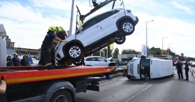 Darura is szükség volt a mentéshez a Soroksári úton. Látványosak a fotók a tréleren összetört új Suzukikról, illetve a felborult furgonról is, ám értesüléseink szerint személyi sérülés szerencsére nem történt a balesetben.